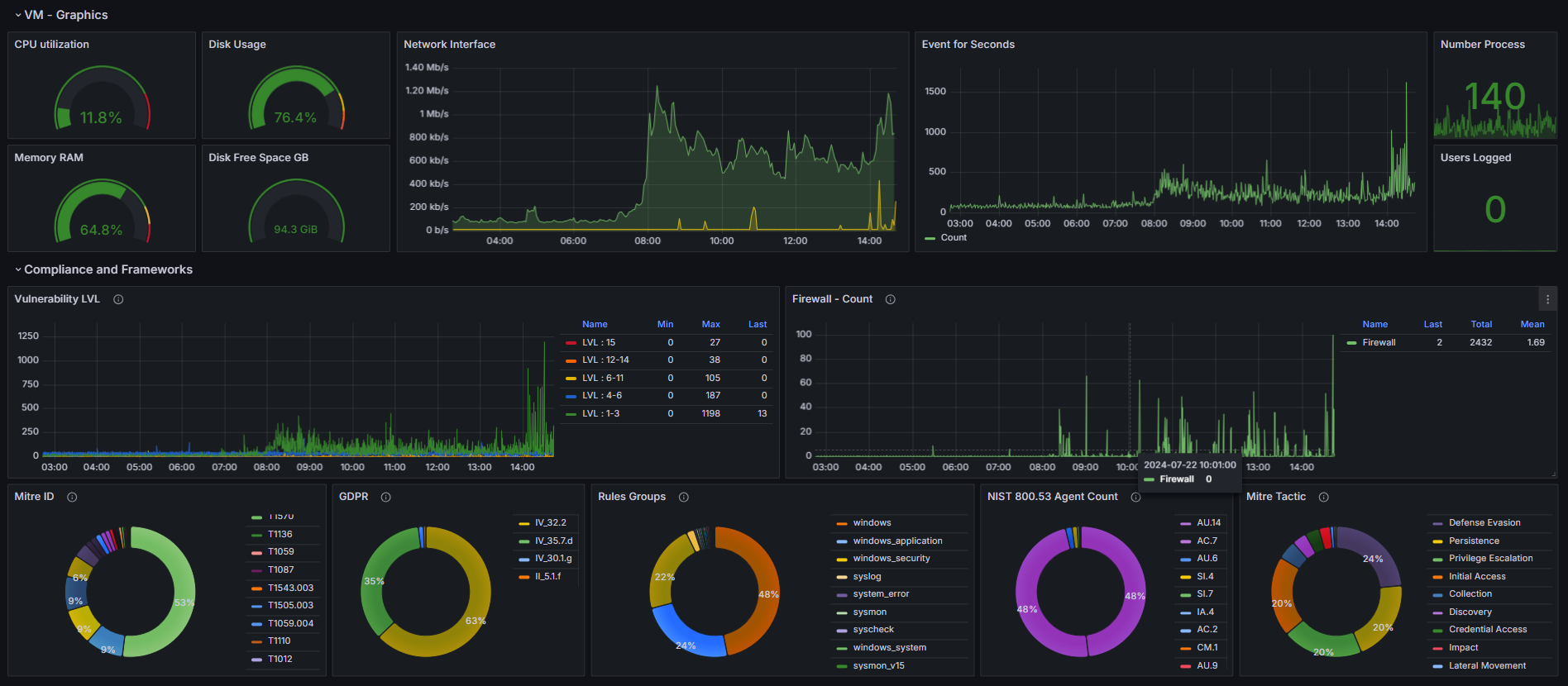 Grafana Dashboard - Wazuh SIEM XDR - v4.8.0