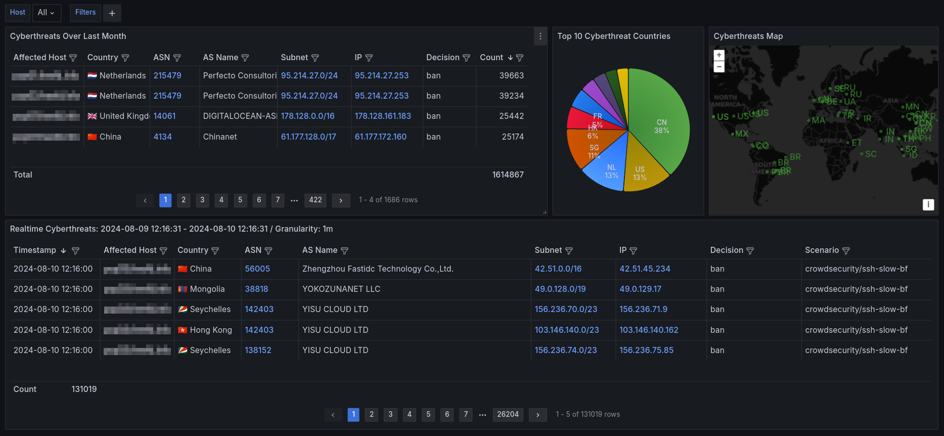 Low-coding open source cyber threats analysis solution based on Crowdsec, VictoriaMetrics, and Grafana.