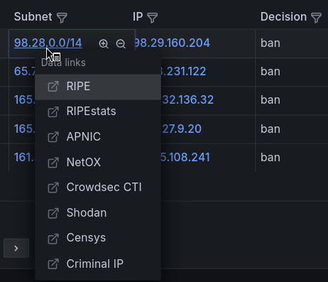 For more information please read the documentation: Cyber threat insights with Crowdsec, VictoriaMetrics and Grafana