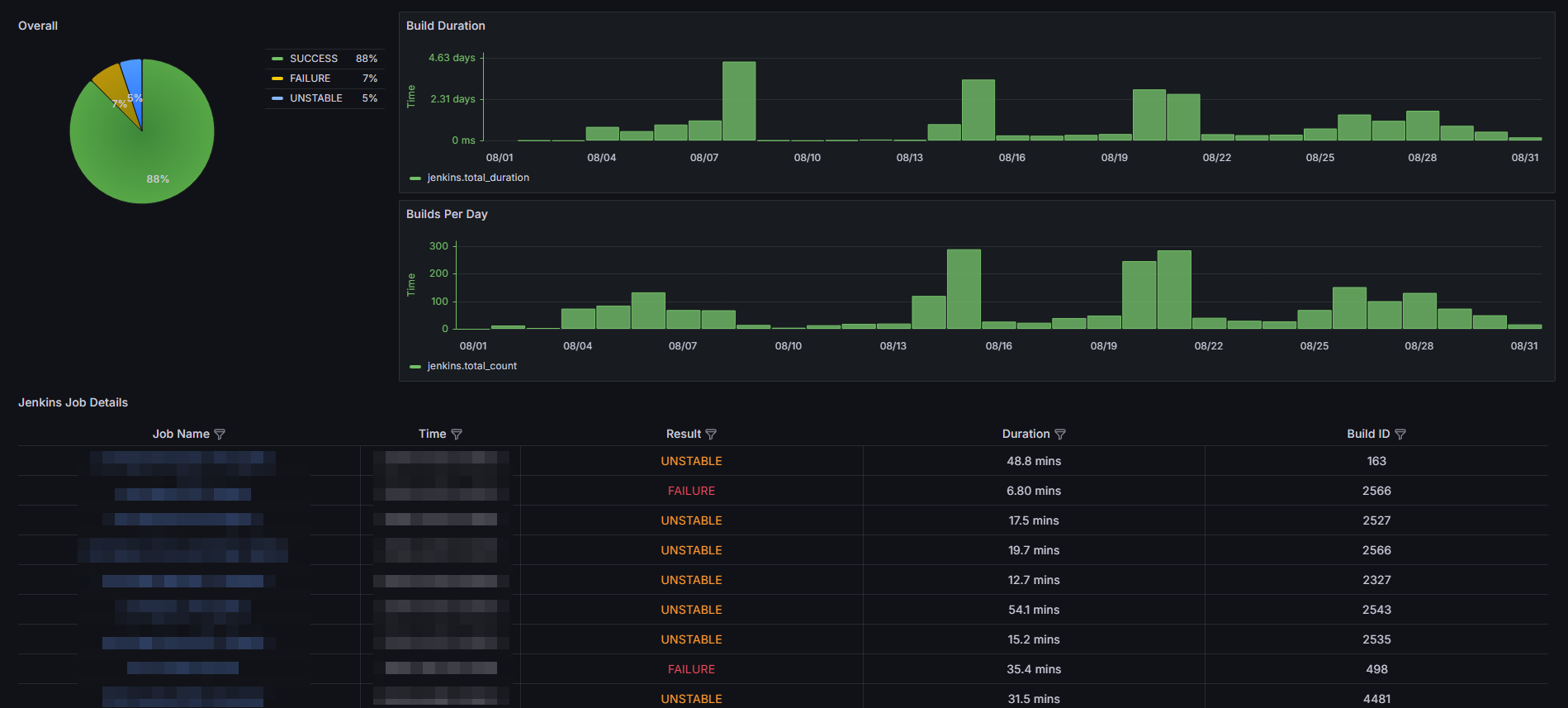 Dashboard to display Jenkins job details from InfluxDB