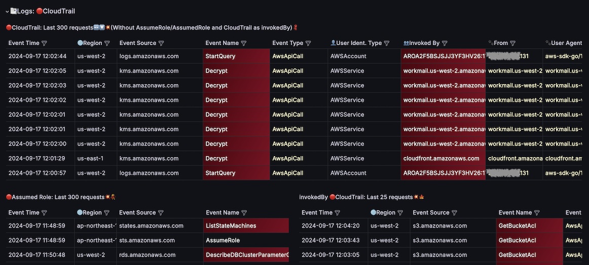 | Centralized 🔴CloudTrail Logs: | - Cross-Service Correlation: Track recent AWS API requests. Easily identify and troubleshoot issues across multiple services, including who called the API and from where. |