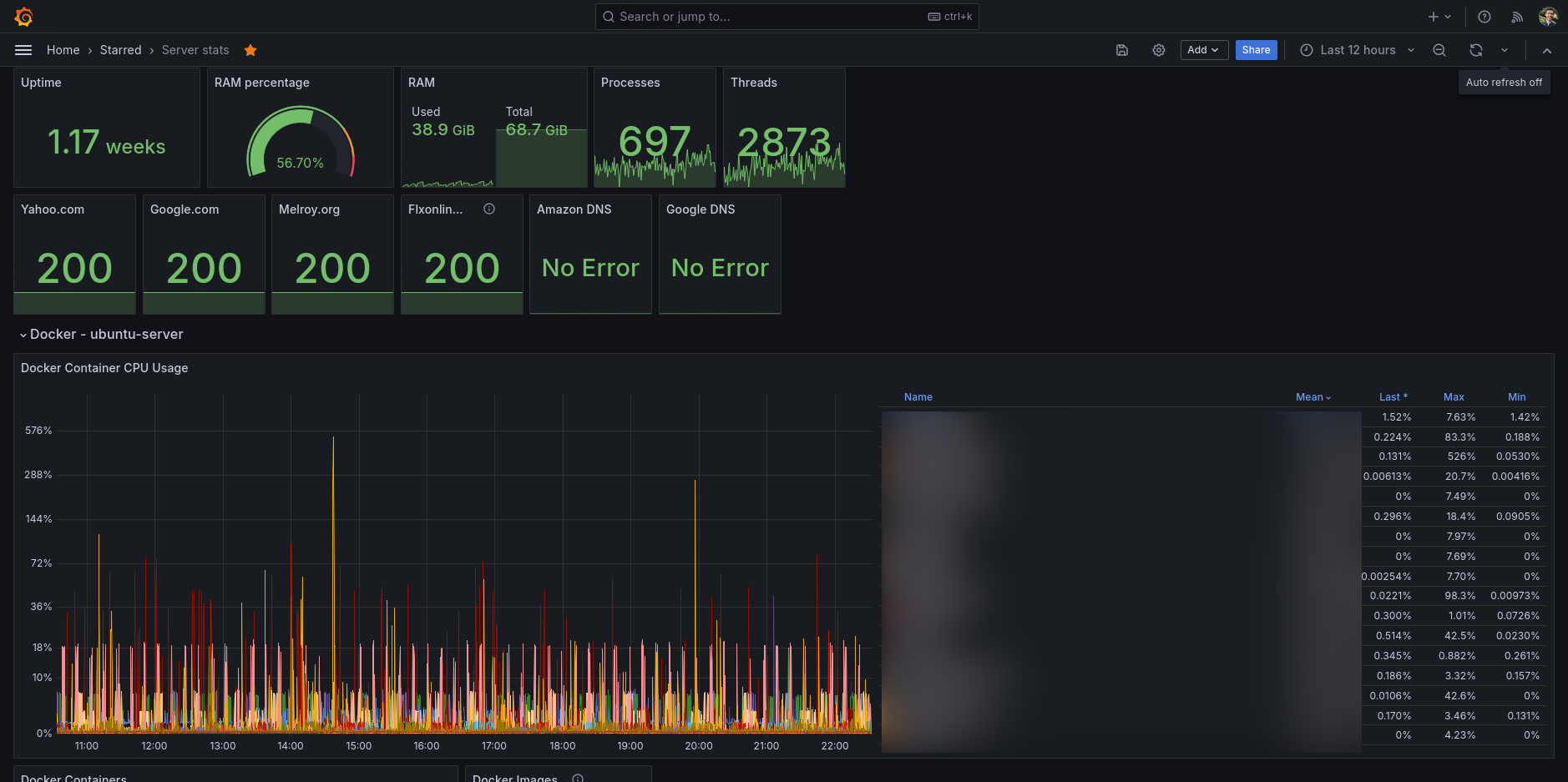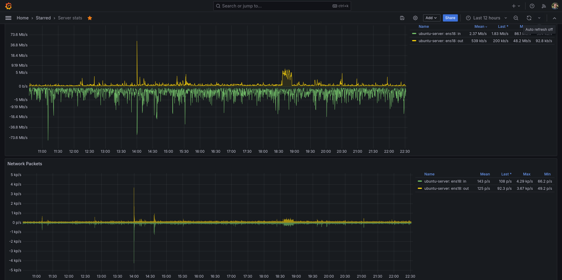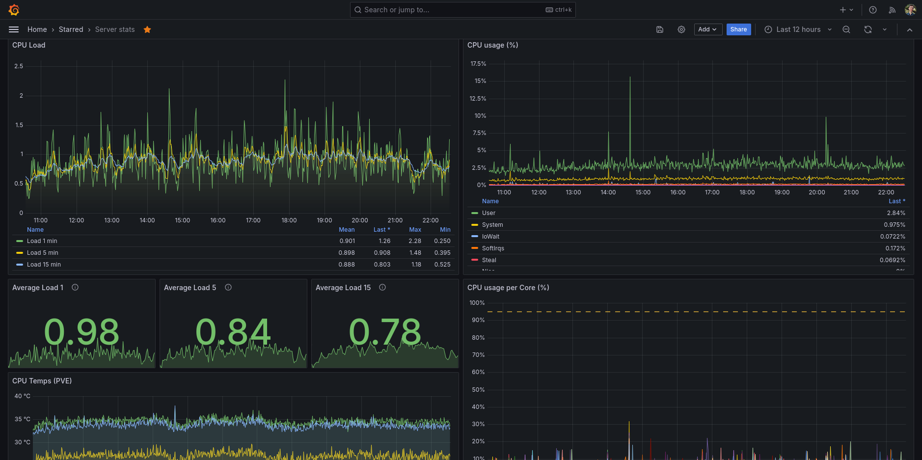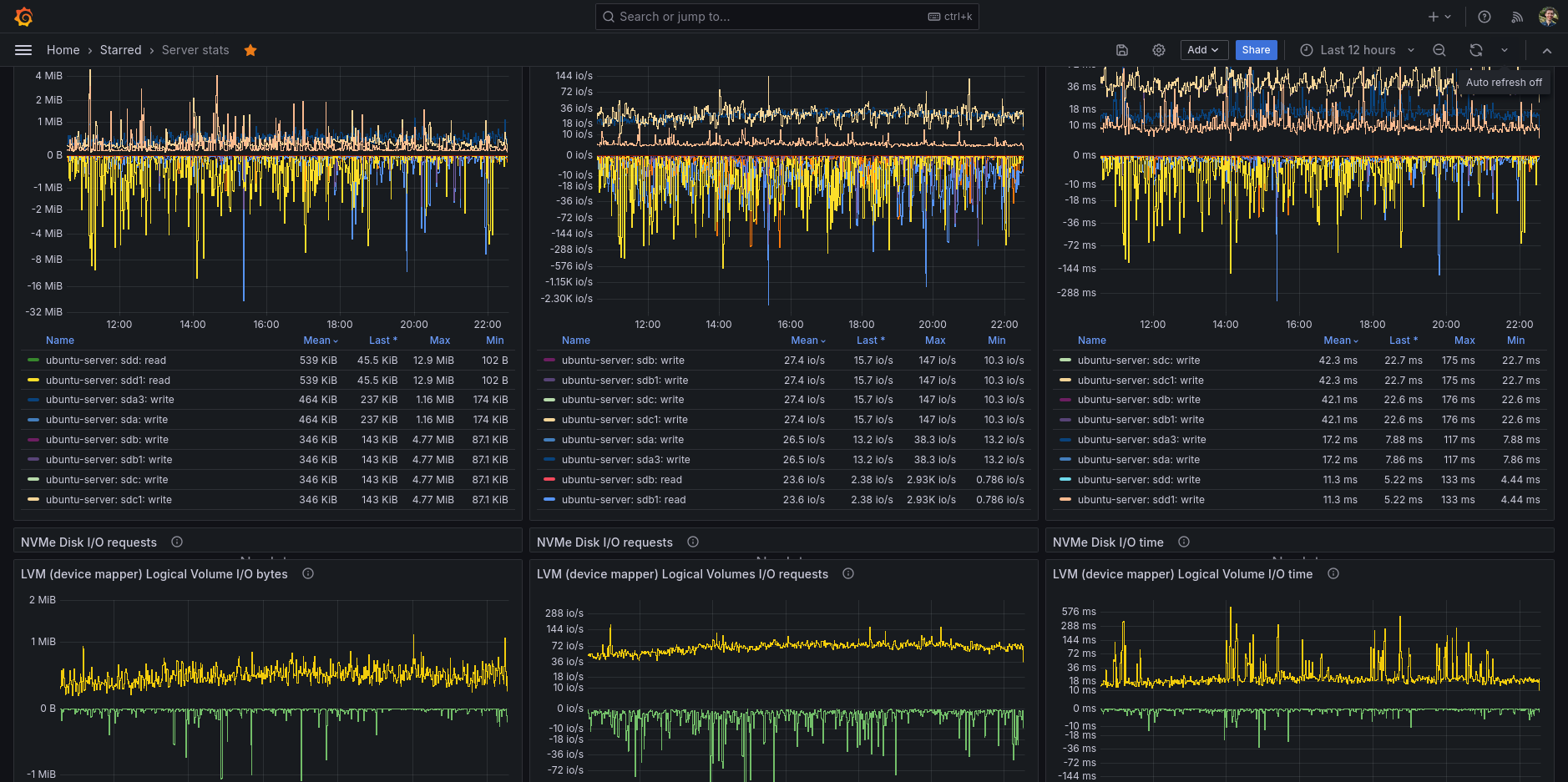 My main go-to Grafana dashboard for my Ubuntu server. A full featured dashboard showing you all the information you ever want to know about your GNU/Linux server.
