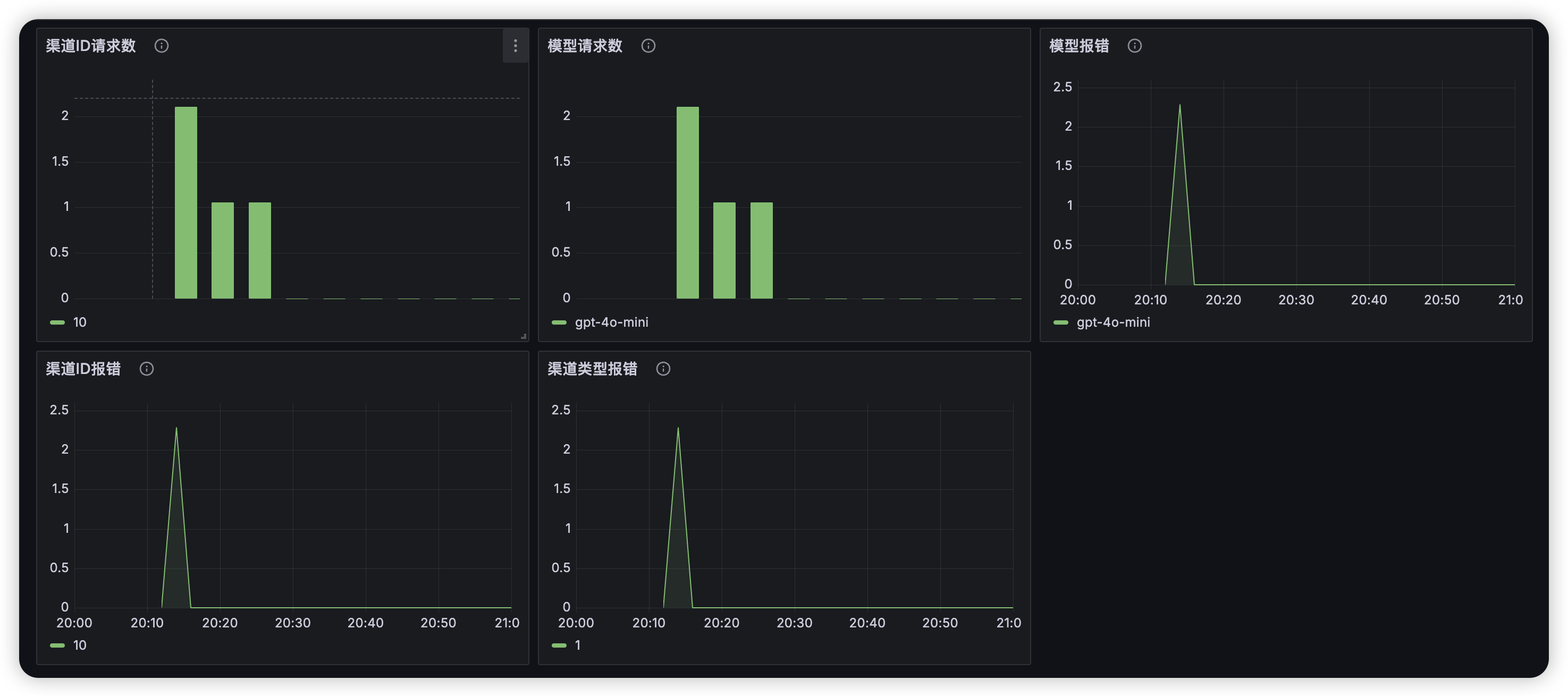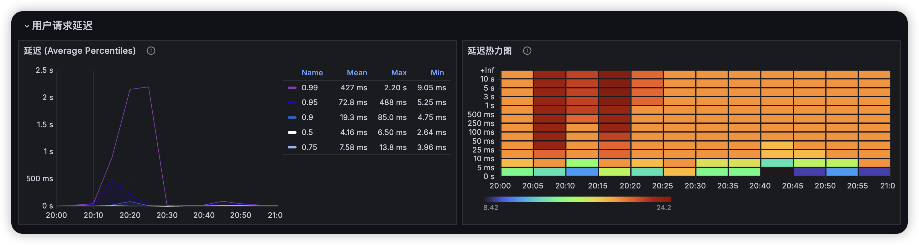 The One-Hub 分析 dashboard uses the prometheus data source to create a Grafana dashboard with the heatmap, stat, table and timeseries panels.
