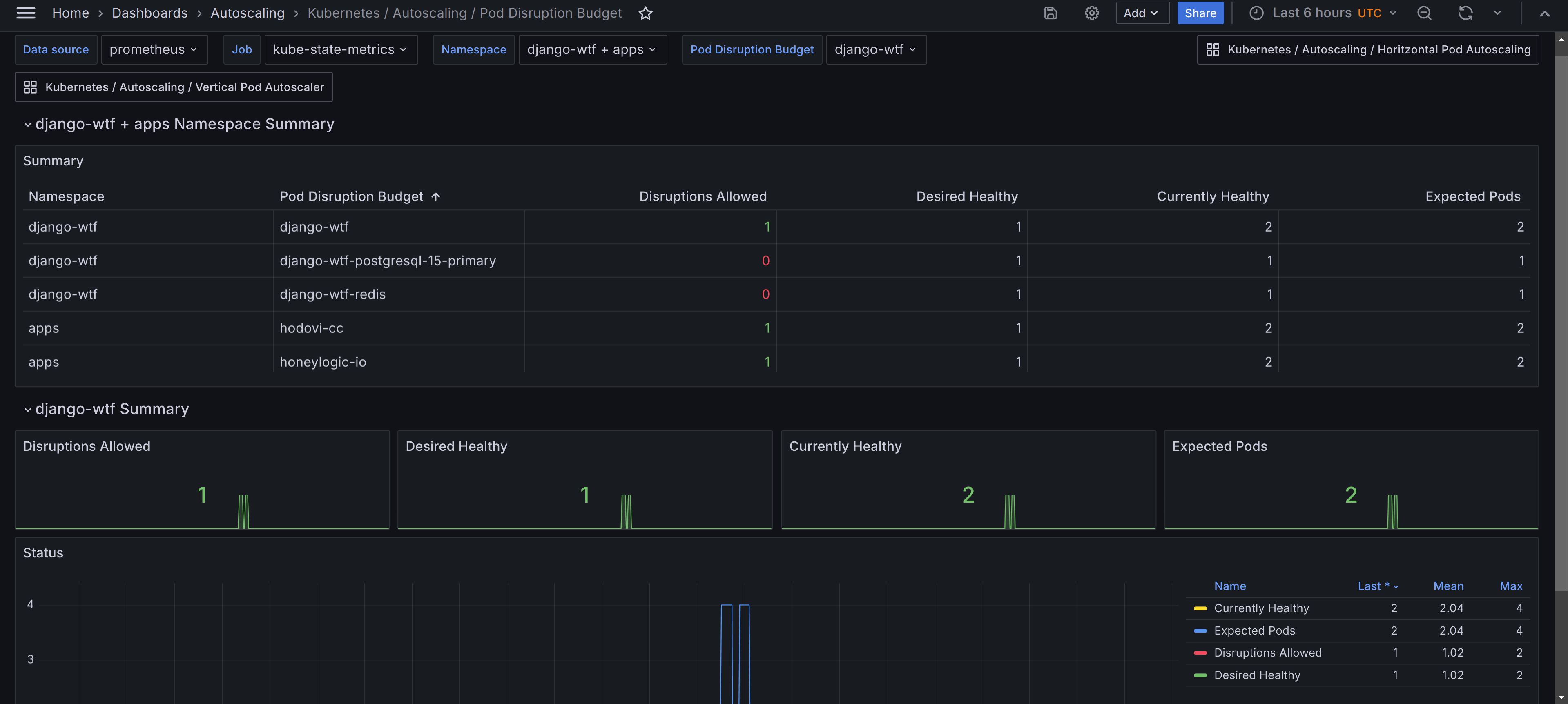 A dashboard that monitors Kubernetes and focuses on giving a overview for pod disruption budgets. The dashboards were generated using [kubernetes-autoscaling-mixin](https://github.com/adinhodovic/kubernetes-autoscaling-mixin). Open issues and create feature requests in the repository.