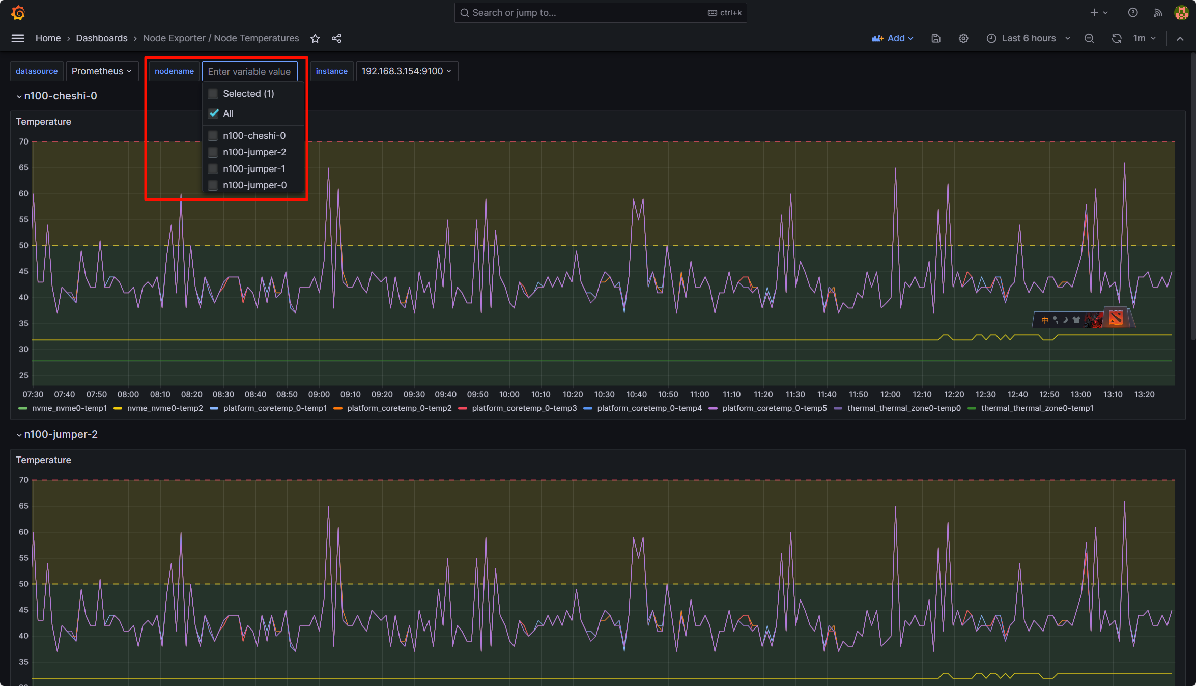 Thermal sensor data from a node. The highlight is that the variables are optimized to use nodename(hostname) instead of ip for filtering.