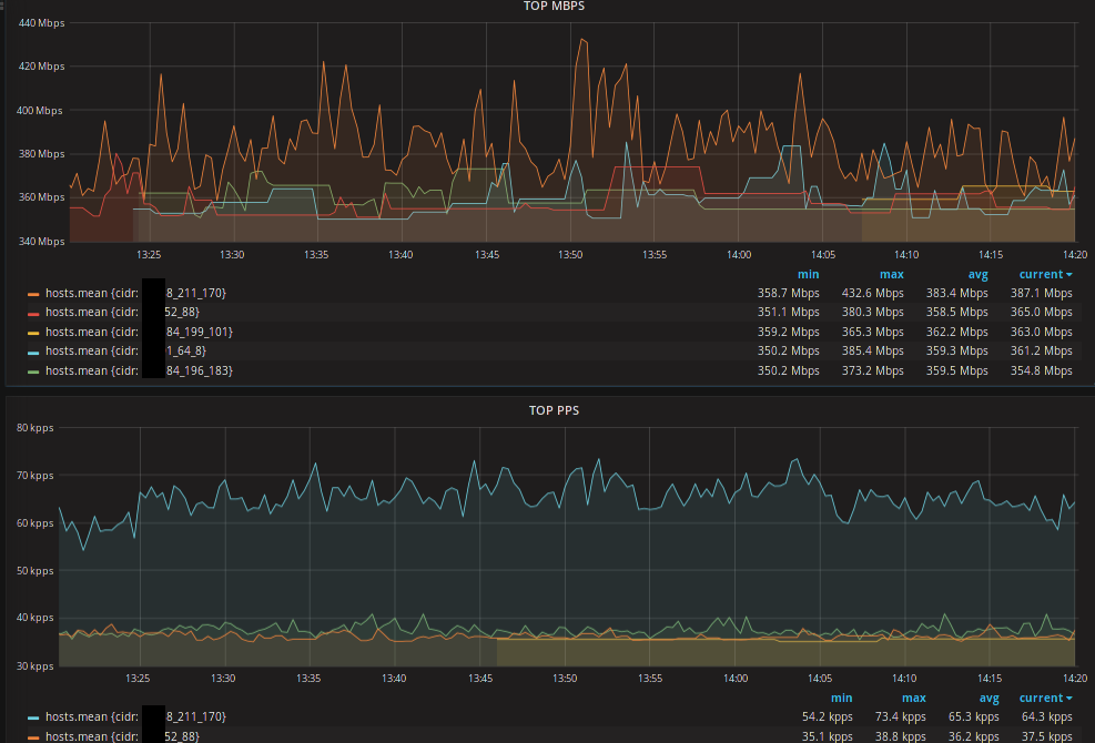 Dashboard with top N outgoing traffic for Fastnetmon community edition.