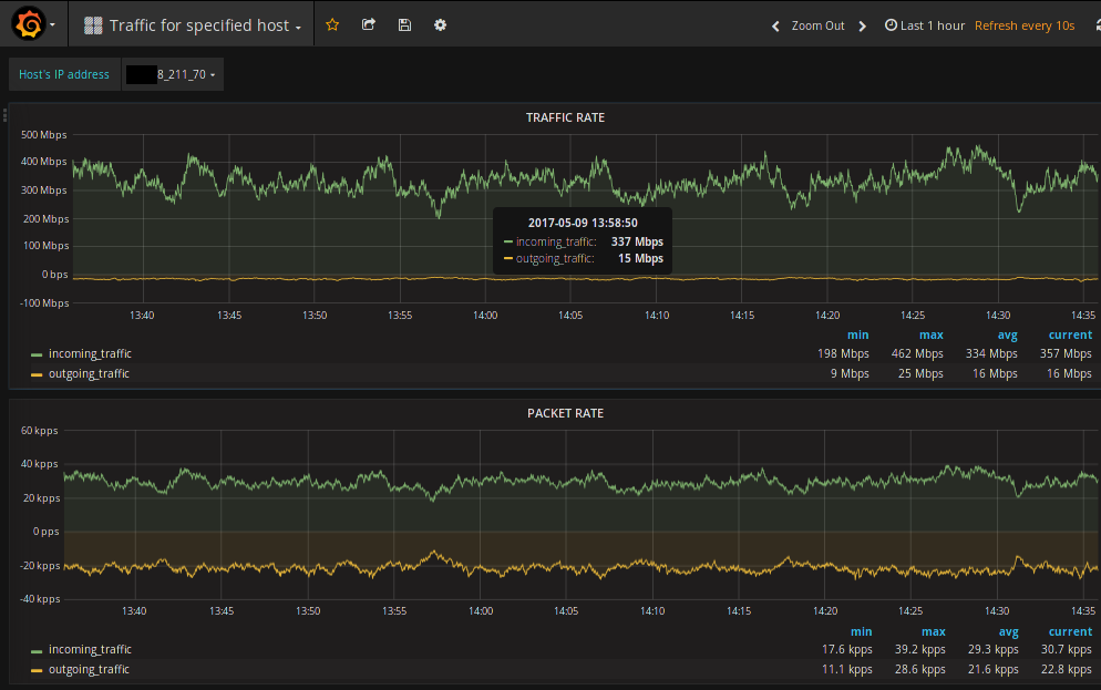Traffic for specified host for Fastnetmon community edition.