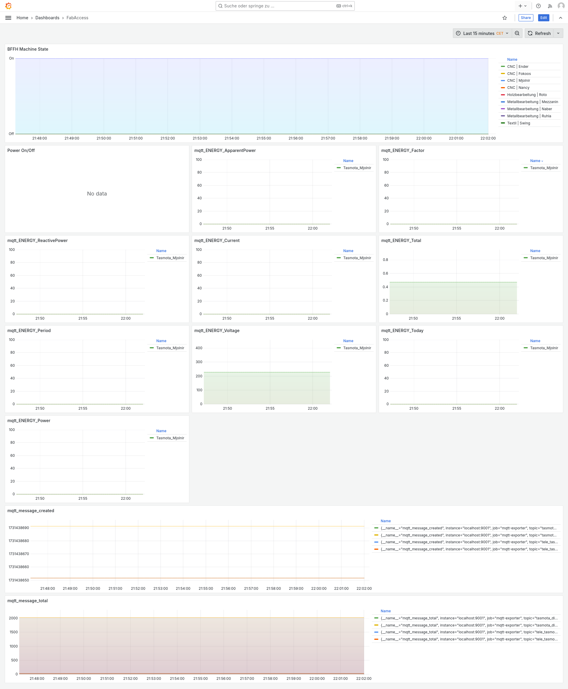 A dashboard to monitor the FabAccess Server (BFFH) machine state and different information of MQTT topics. The board is under development.