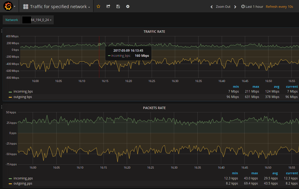 Traffic for specified network for Fastnetmon community edition.