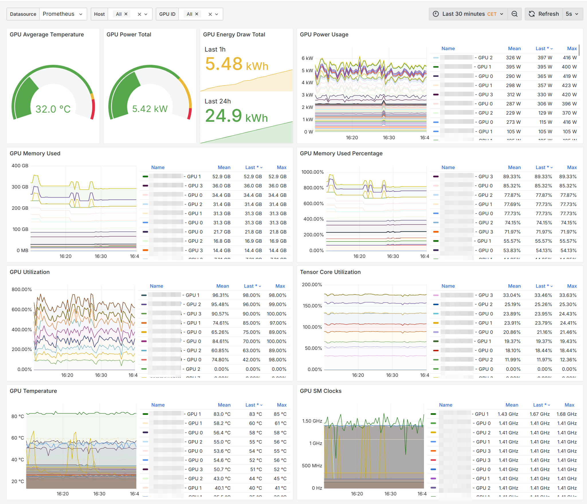 This dashboard is based on the original DCGM-Exporter dashboard by NVIDIA, but comes with an improved layout and a few additional visualizations.