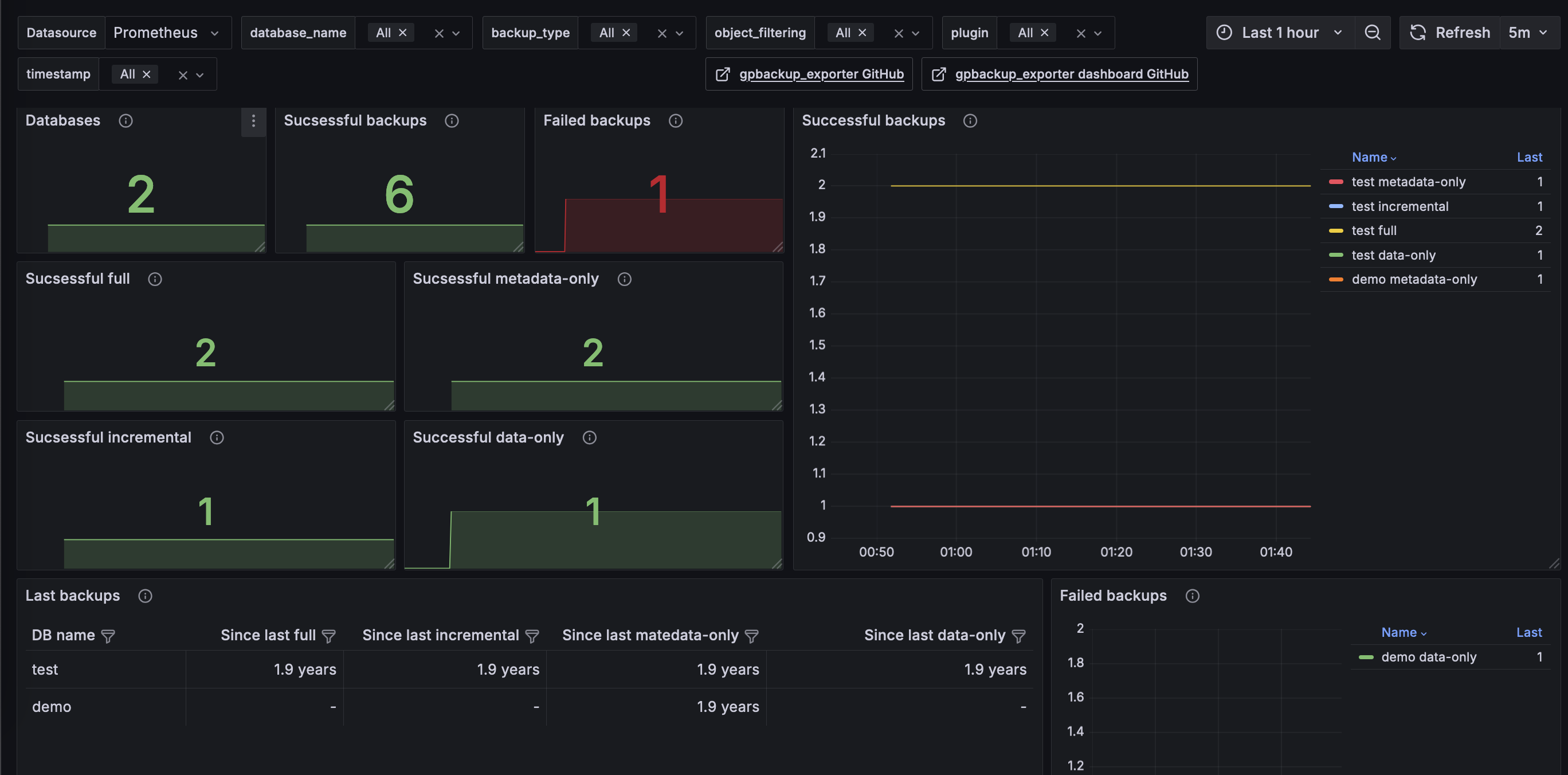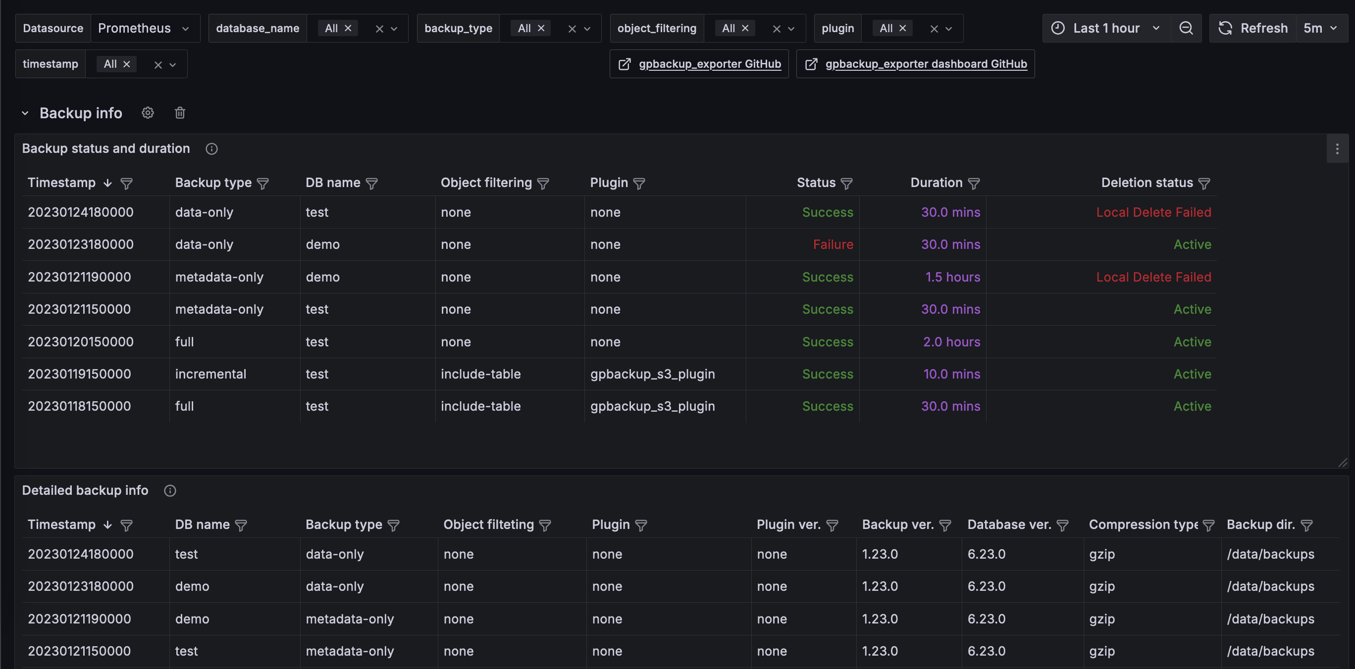 To get this dashboard from github.com: gpbackup Exporter Dashboard.
