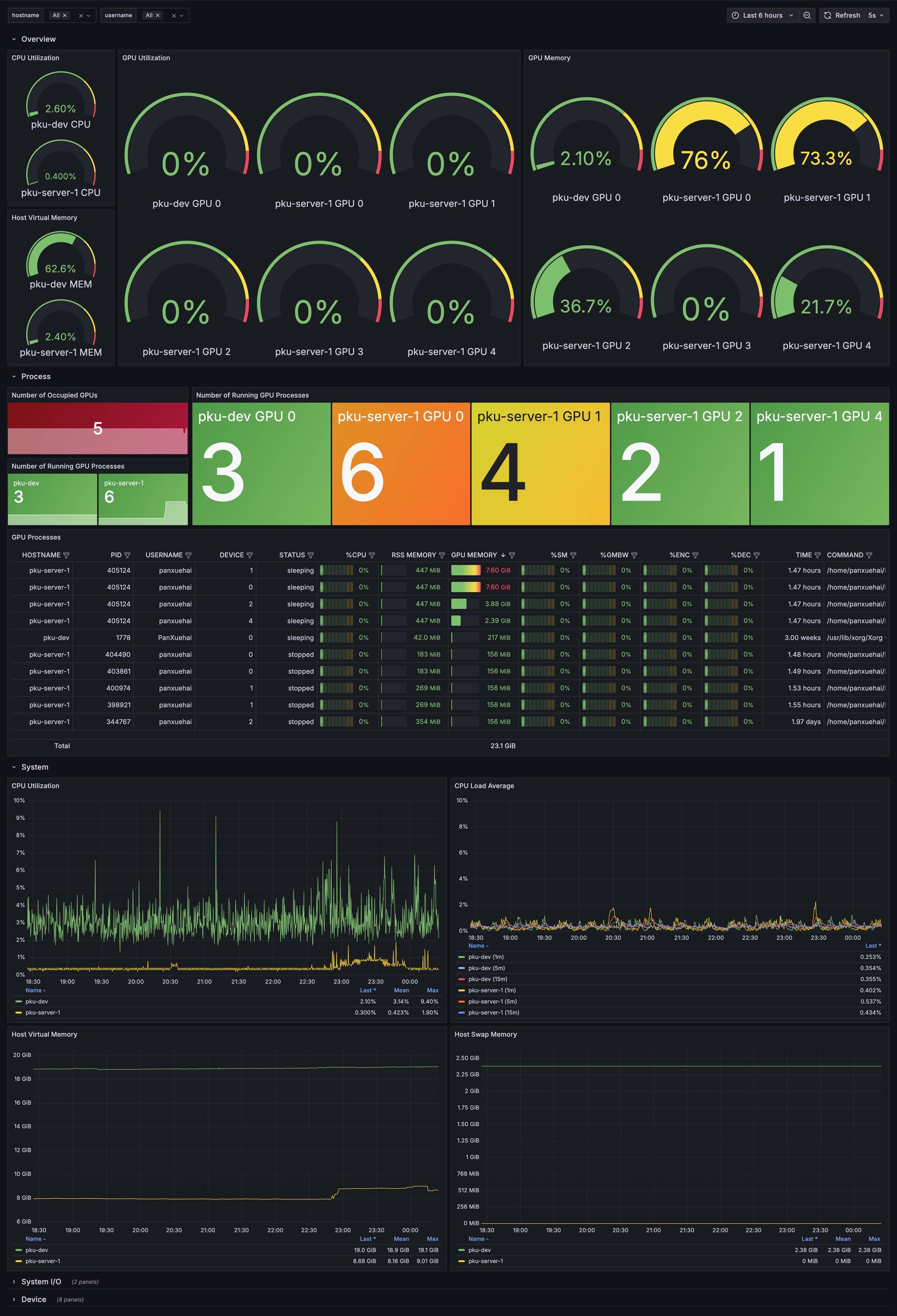 Grafana Dashboard built by `nvitop-exporter`.