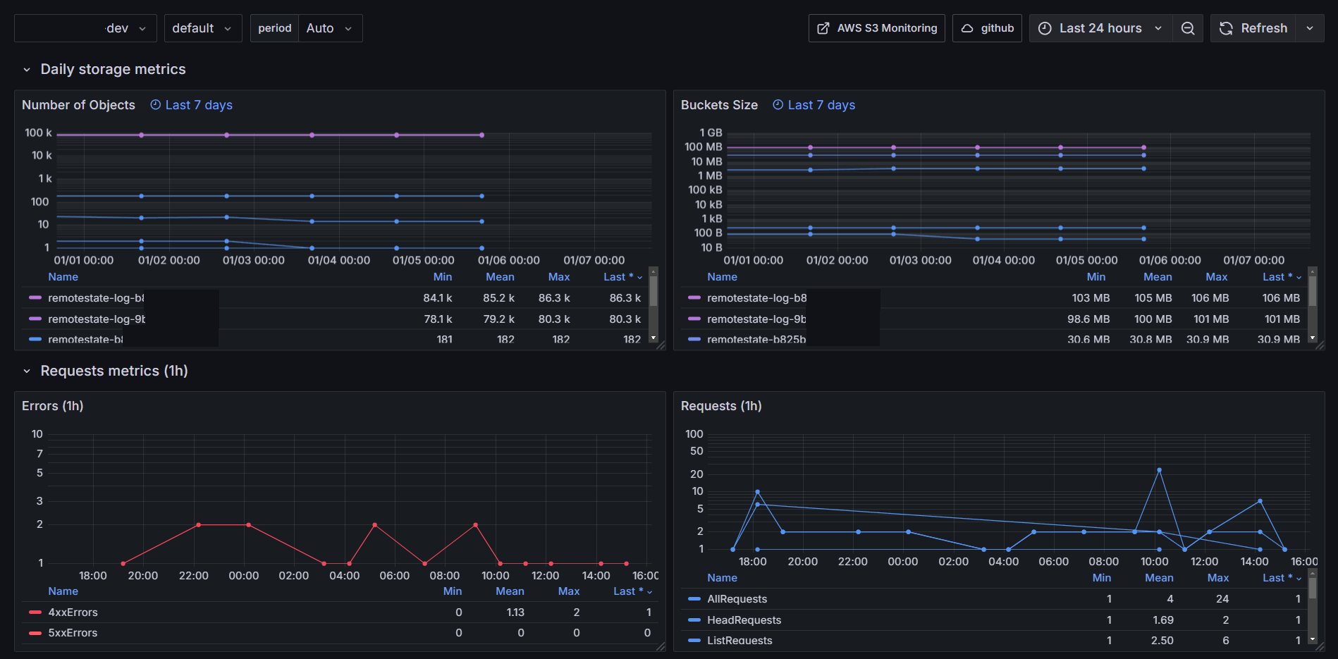 This dashboard uses aws s3 namespace cloudwatch metrics.