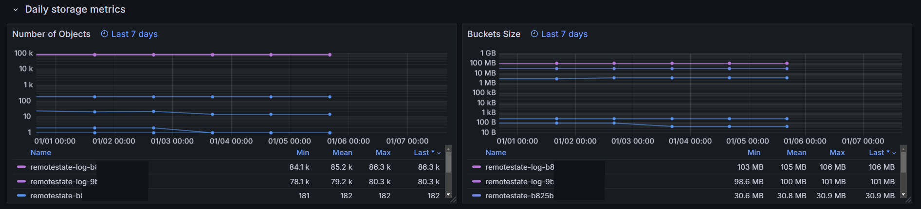 These storage metrics for Amazon S3 are reported once per day.