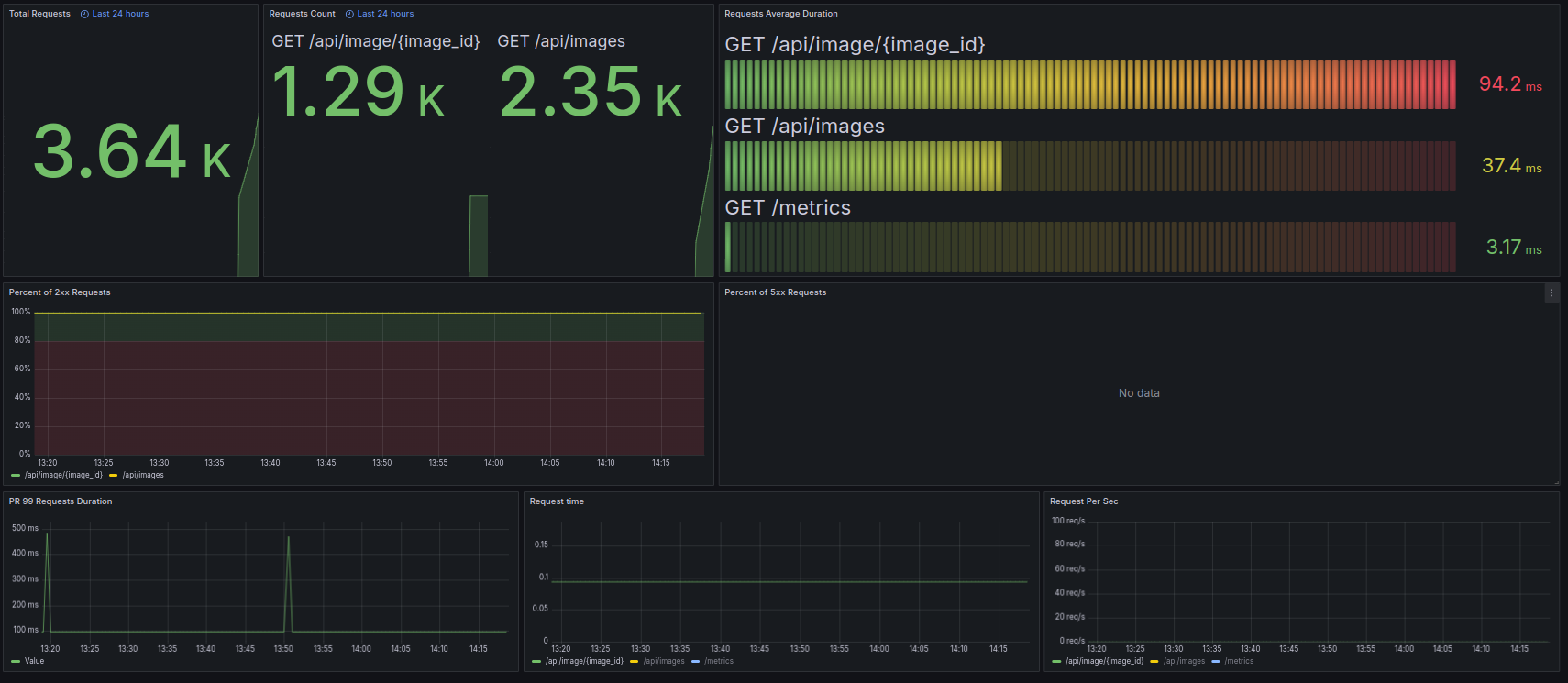 FastAPI dashboard for programs using FastAPI instrumented via prometheus_fastapi_instrumentator