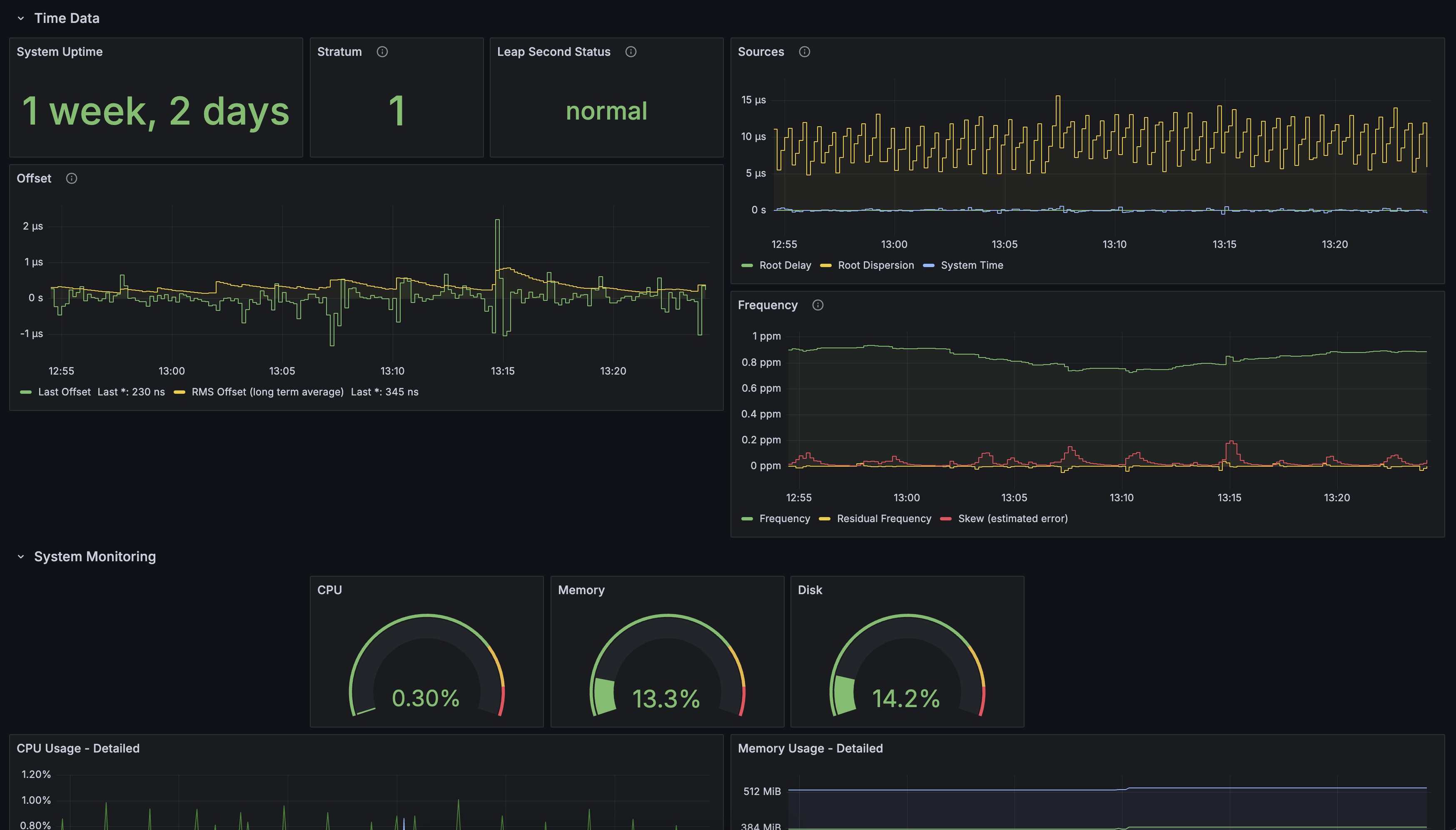 Get configuration examples at https://blog.shrunbr.dev/posts/stratum-1-ntp/#monitoring-ntp