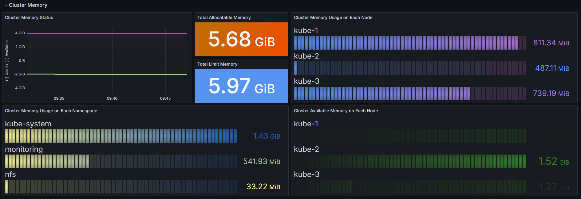 - Cluster Memory (Node, Namespace, Pod) Usage
