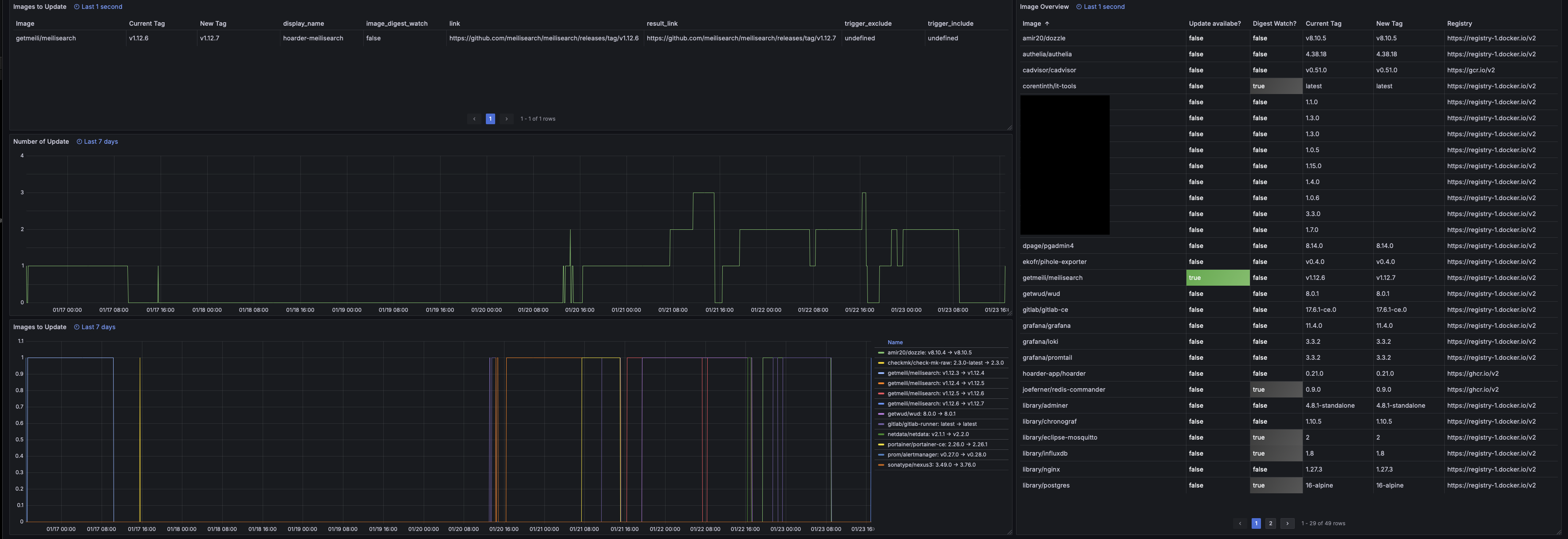 Grafana Dashboard for WUD (What's up Docker) using builtin Prometheus Metrics under /metrics.