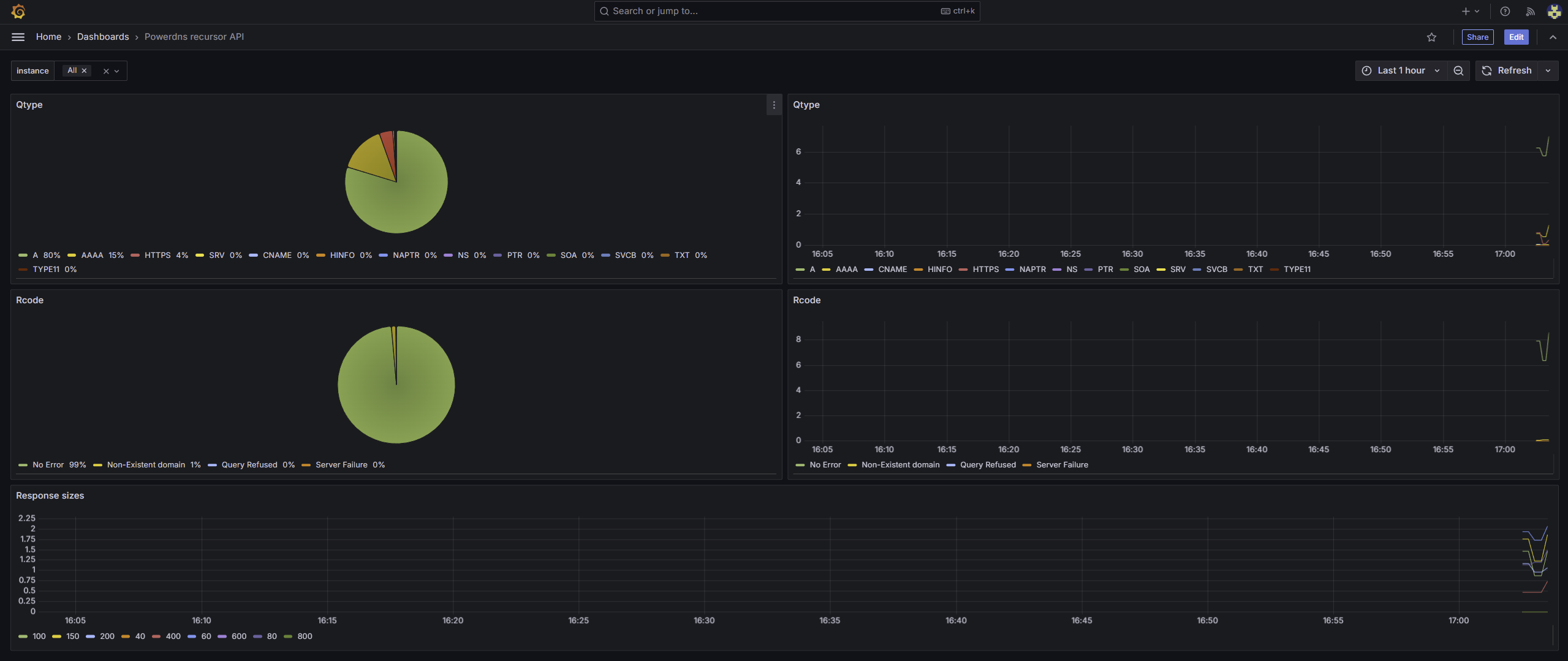 Powerdns recursor API with JSON exporter - https://www.powerdns.com/powerdns-recursor