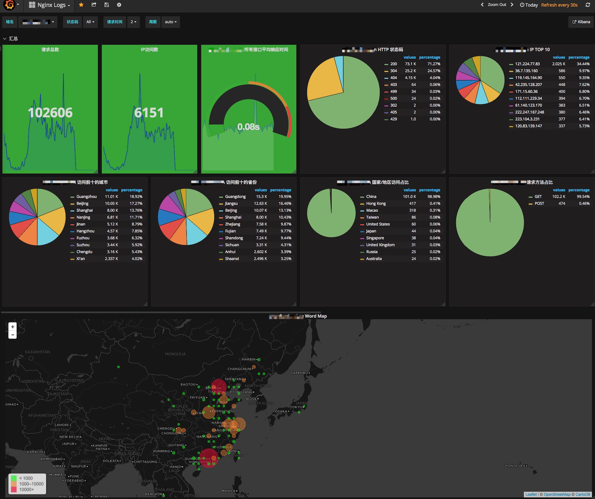Browse, analyze logs in Elasticsearchstatus_codes, pie-chart, top 10 clientip, line-chart,word-map and etc...