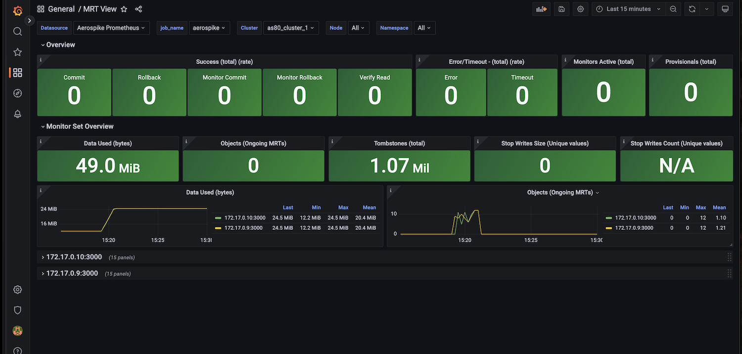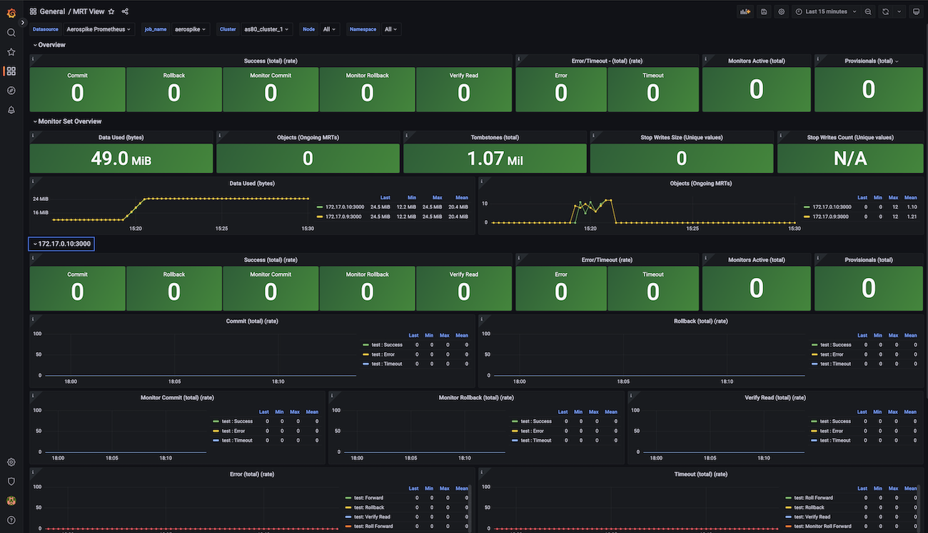 Aerospike MRT Overview monitoring dashboard for Aerospike Monitoring Stack