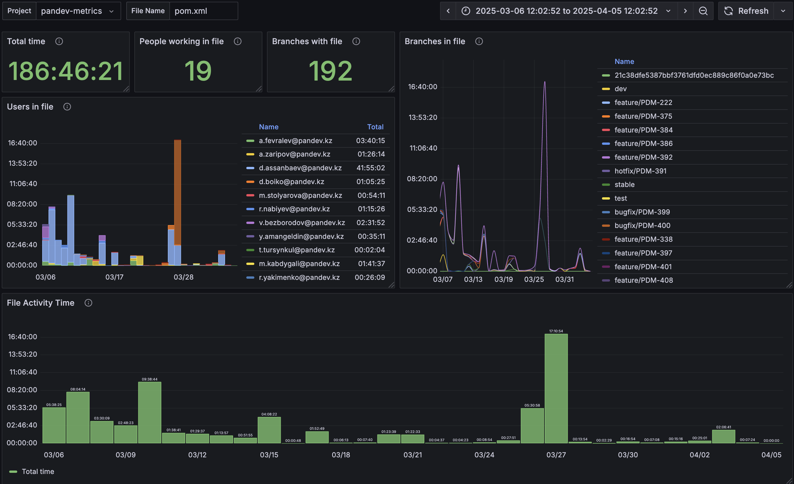 Detailed statistics on work in files of the selected project