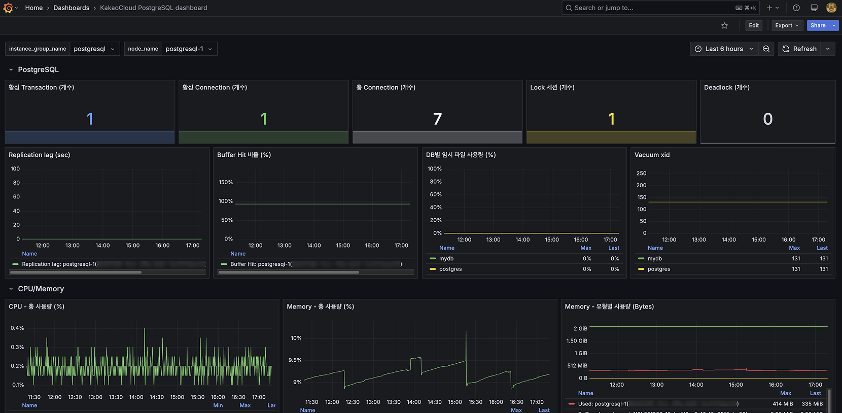 KakaoCloud PostgreSQL dashboard