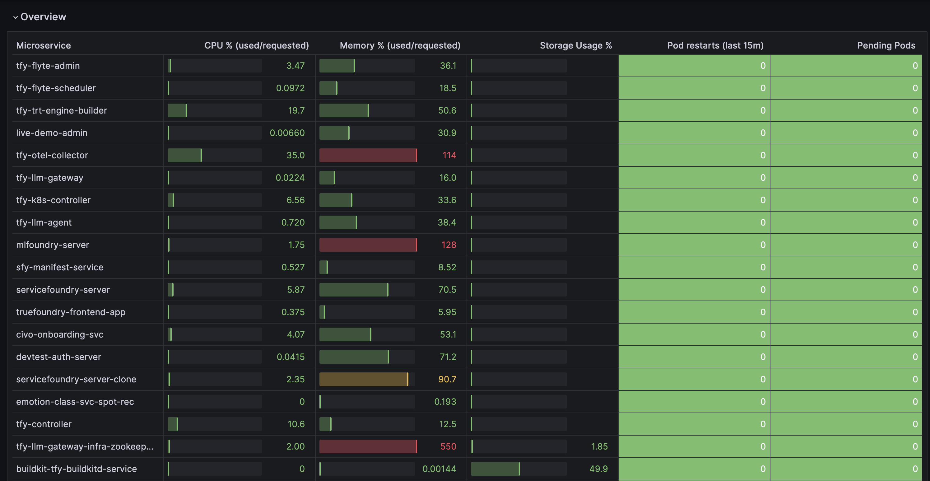 50GB logs, 50GB traces, 50GB profiles