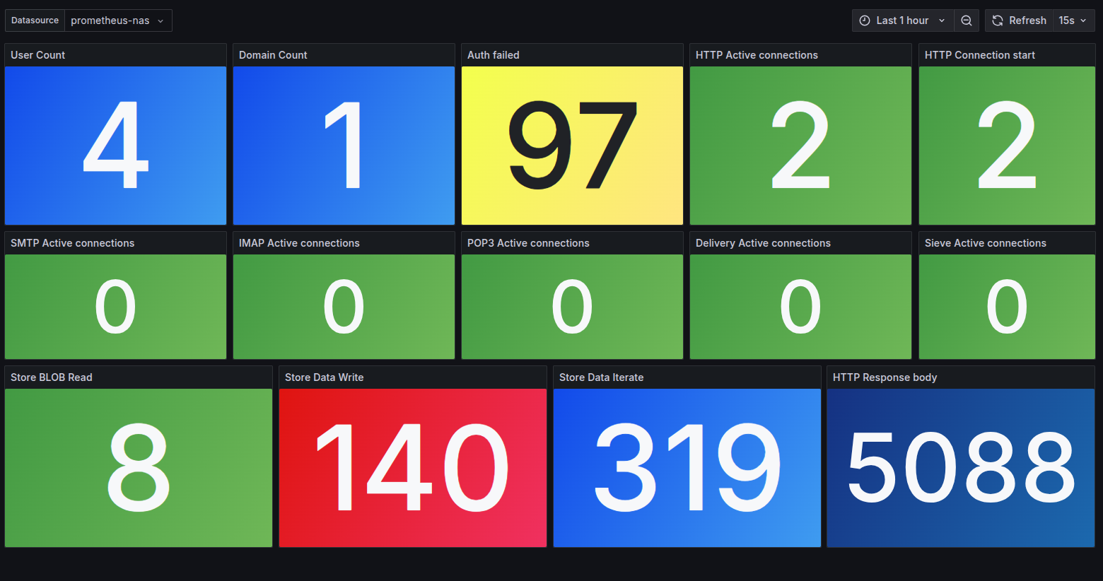Simple stalwart metrics dashboard based on the default stalwart metrics endpoint