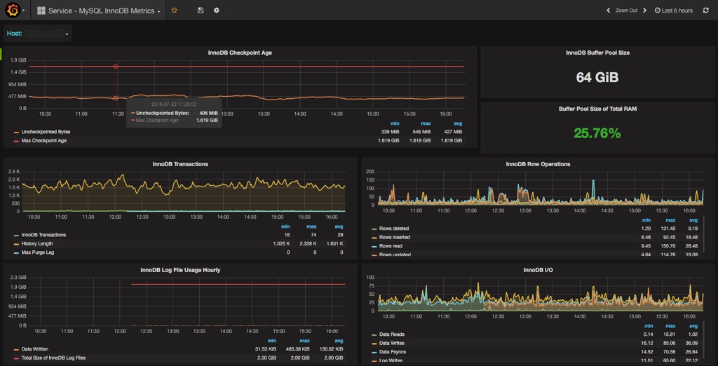 These are Grafana dashboards for MySQL to be used with Graphite. They are based on great Percona dashboards for Prometheus. I try to mimic them as close as possible.