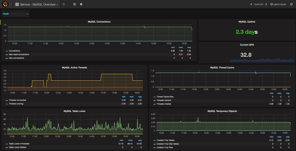 These dashboards are meant to be used with CollectD as a metrics collector. Provided mysql.py CollectD plugin must be used to gather statistics and put them in the right prefix.