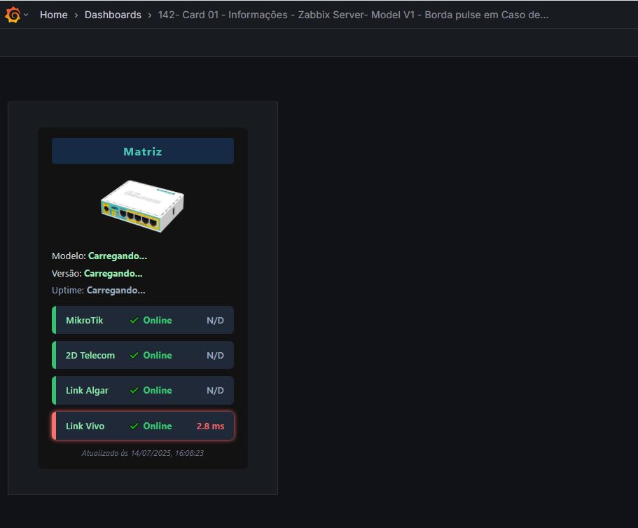 143- Card 01 - Informações - Zabbix Server- Model V1 - Borda pulse em Caso de Offline e Atualizado as