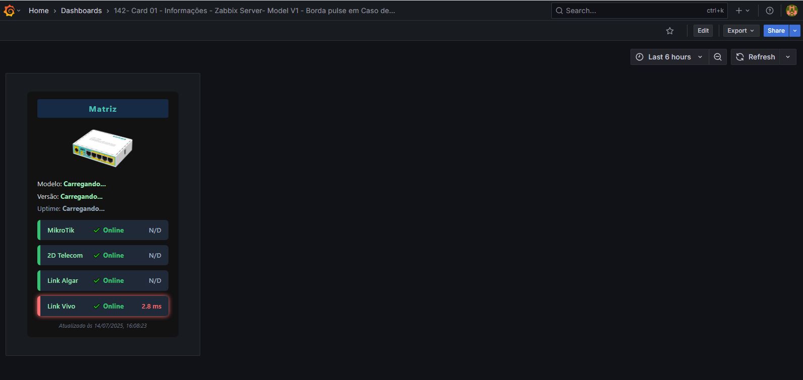 143- Card 01 - Informações - Zabbix Server- Model V1 - Borda pulse em Caso de Offline e Atualizado as