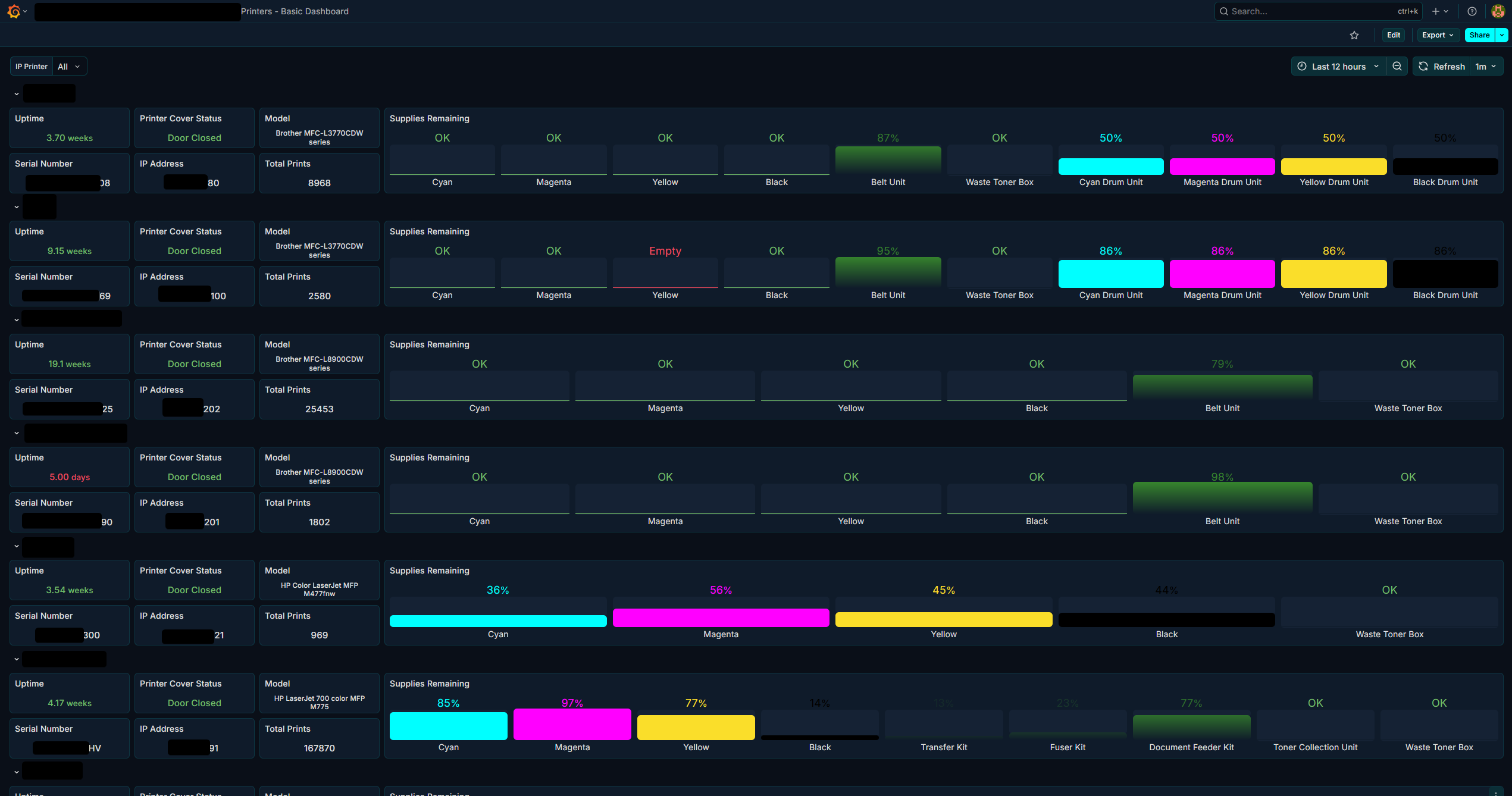 - Removed the "General" section in favour of having all printers have their own row for information to streamline presentation