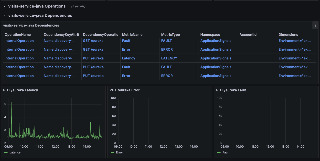 This dashboard helps visualize Service information from AWS using the Application Signals and CloudWatch plugins.