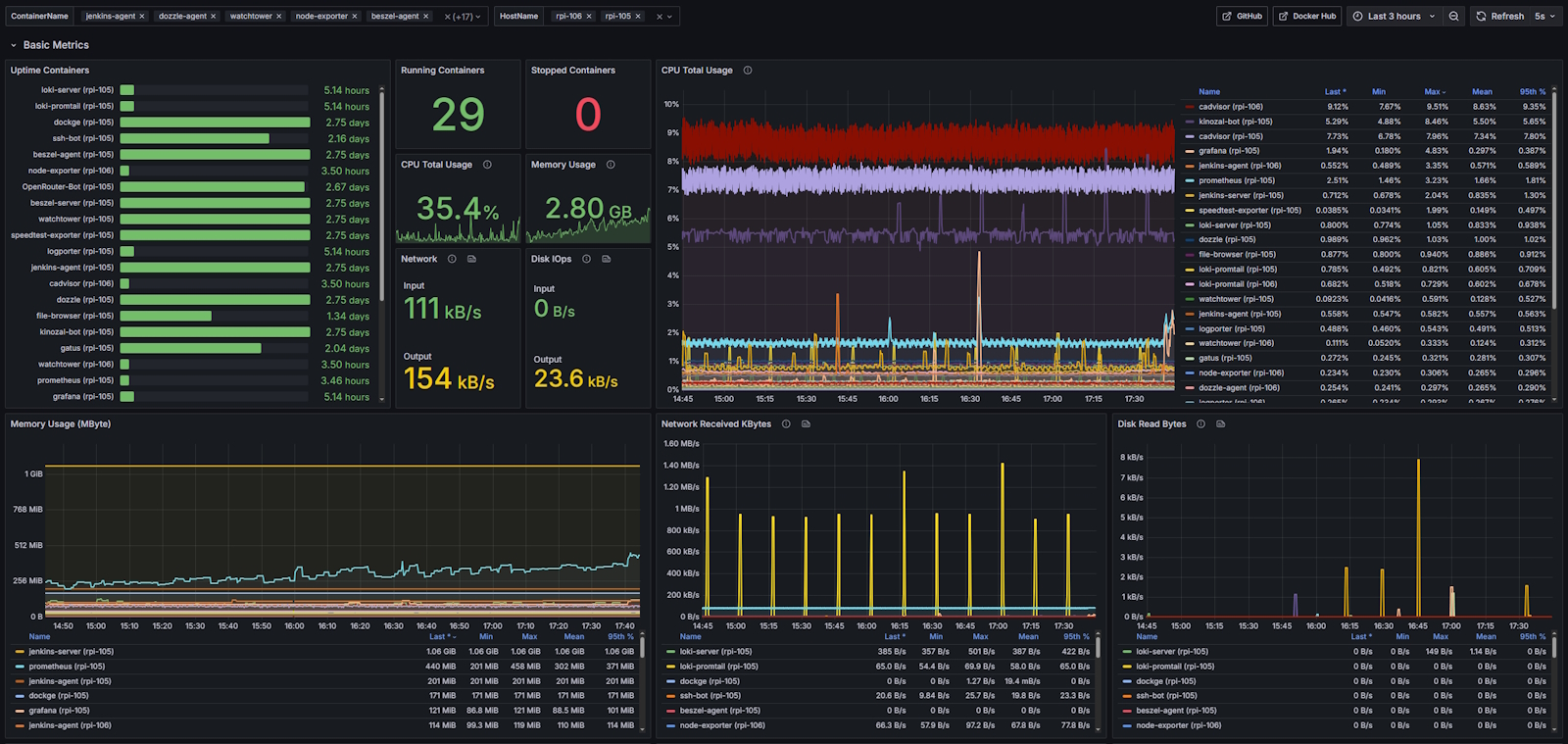 A simple and lightweight alternative to cAdvisor for getting all basic metrics from Docker containers. Source code: https://github.com/Lifailon/logporter