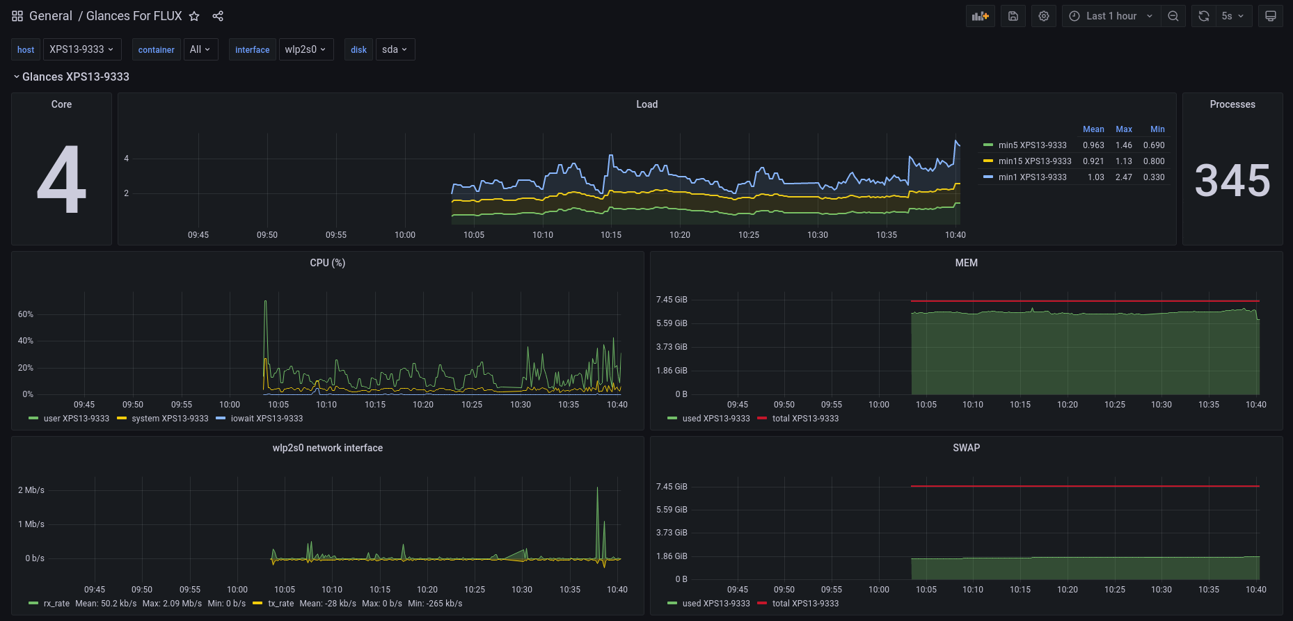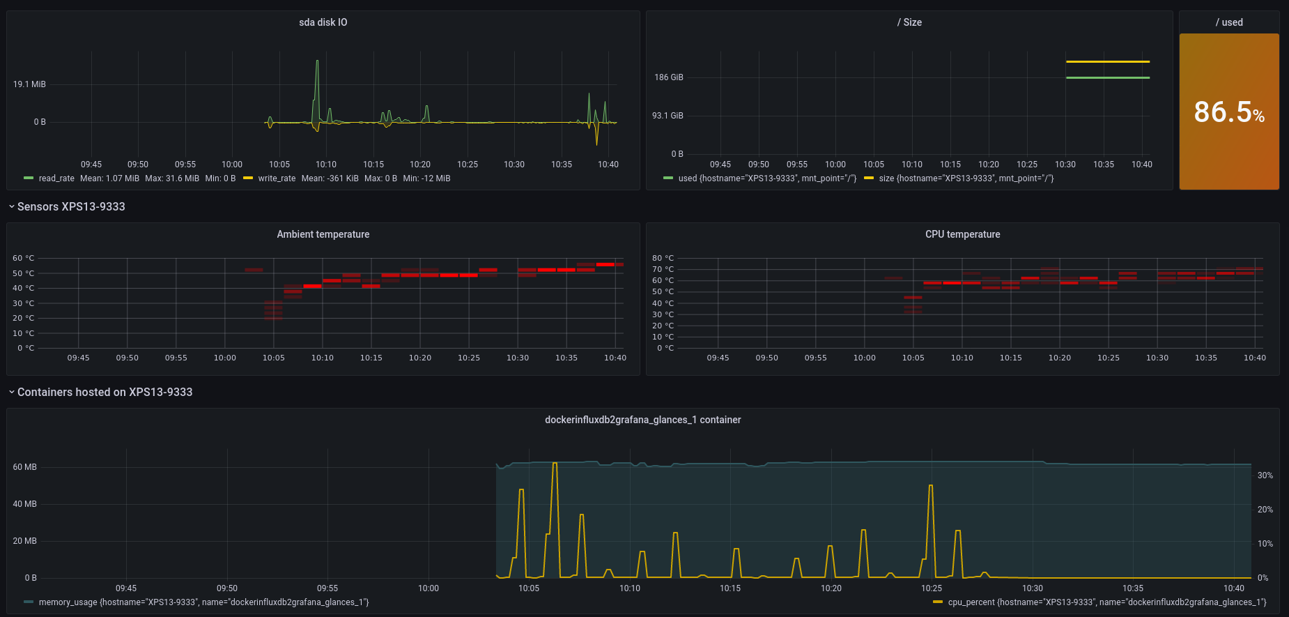 Start Glances (you can configure the InfluxDB server address in the Glances configuration file):
