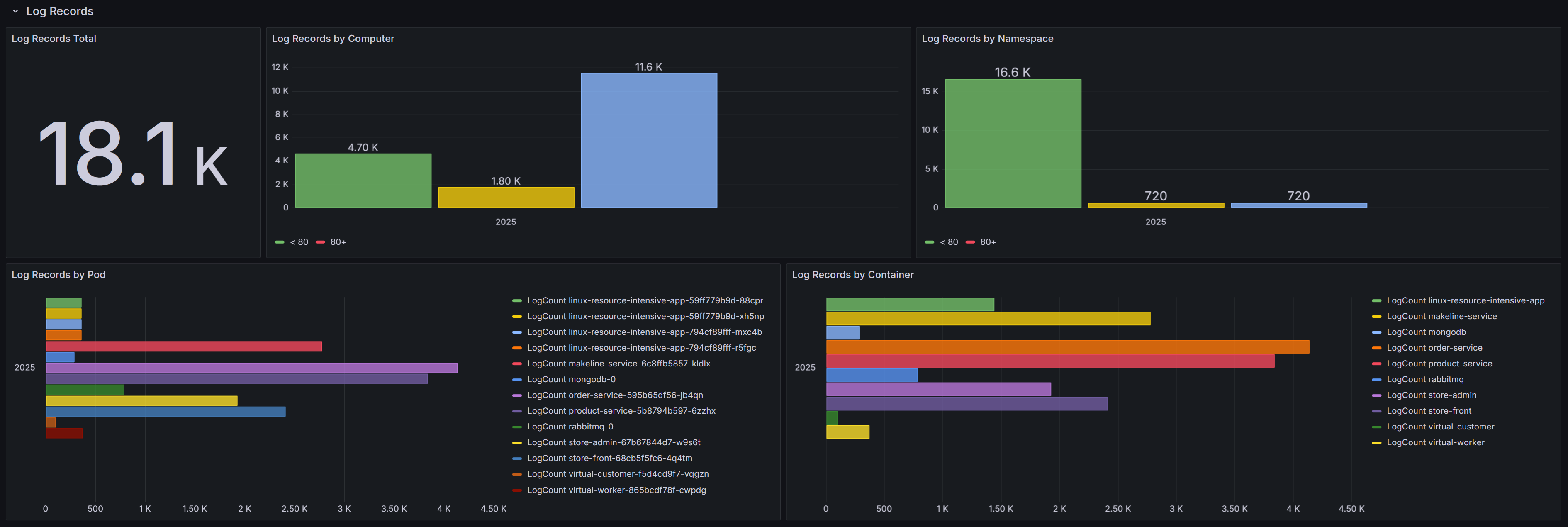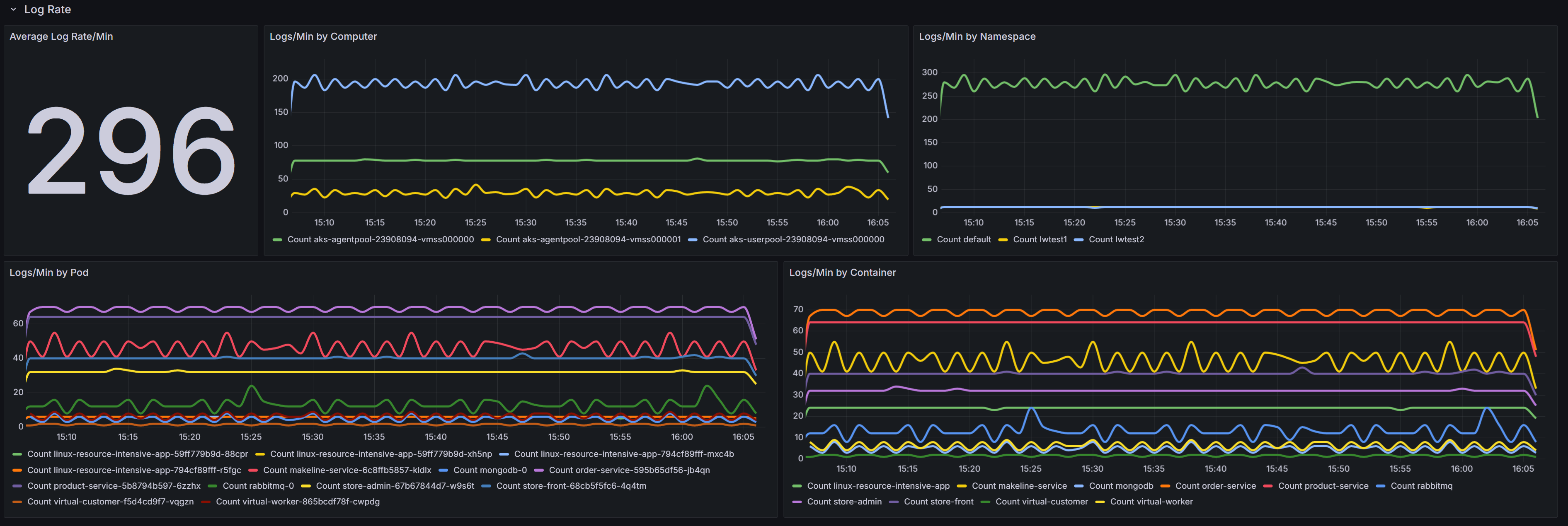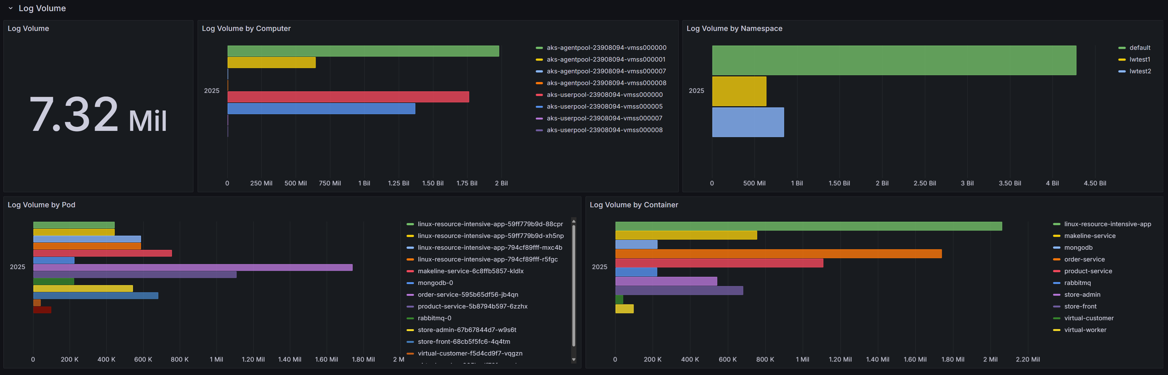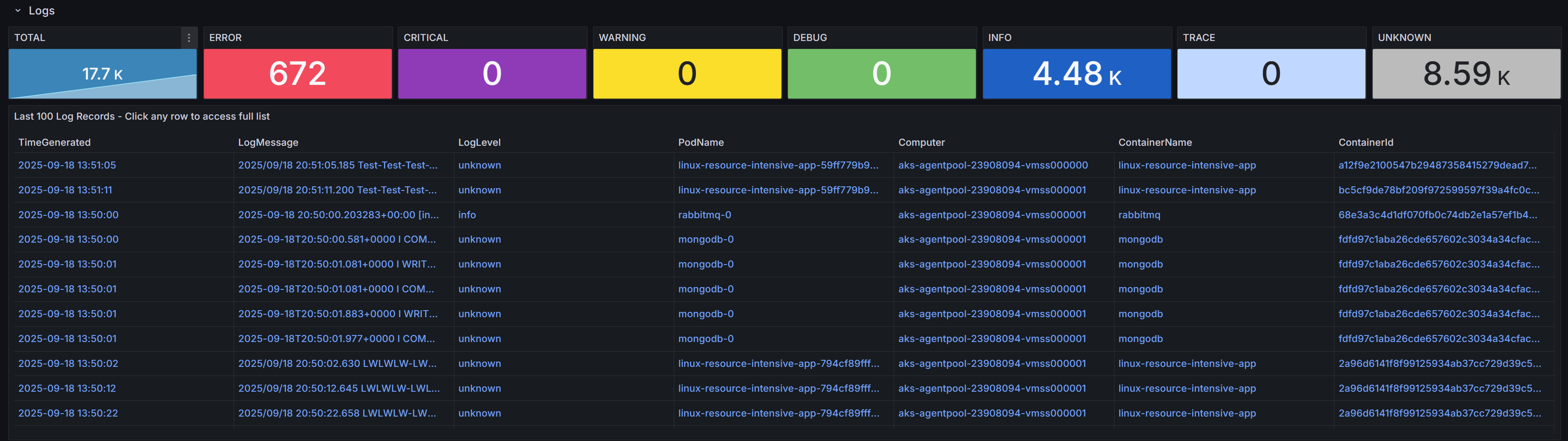 Dashboard visualizing ContainerLogV2 records collected by Azure Monitor