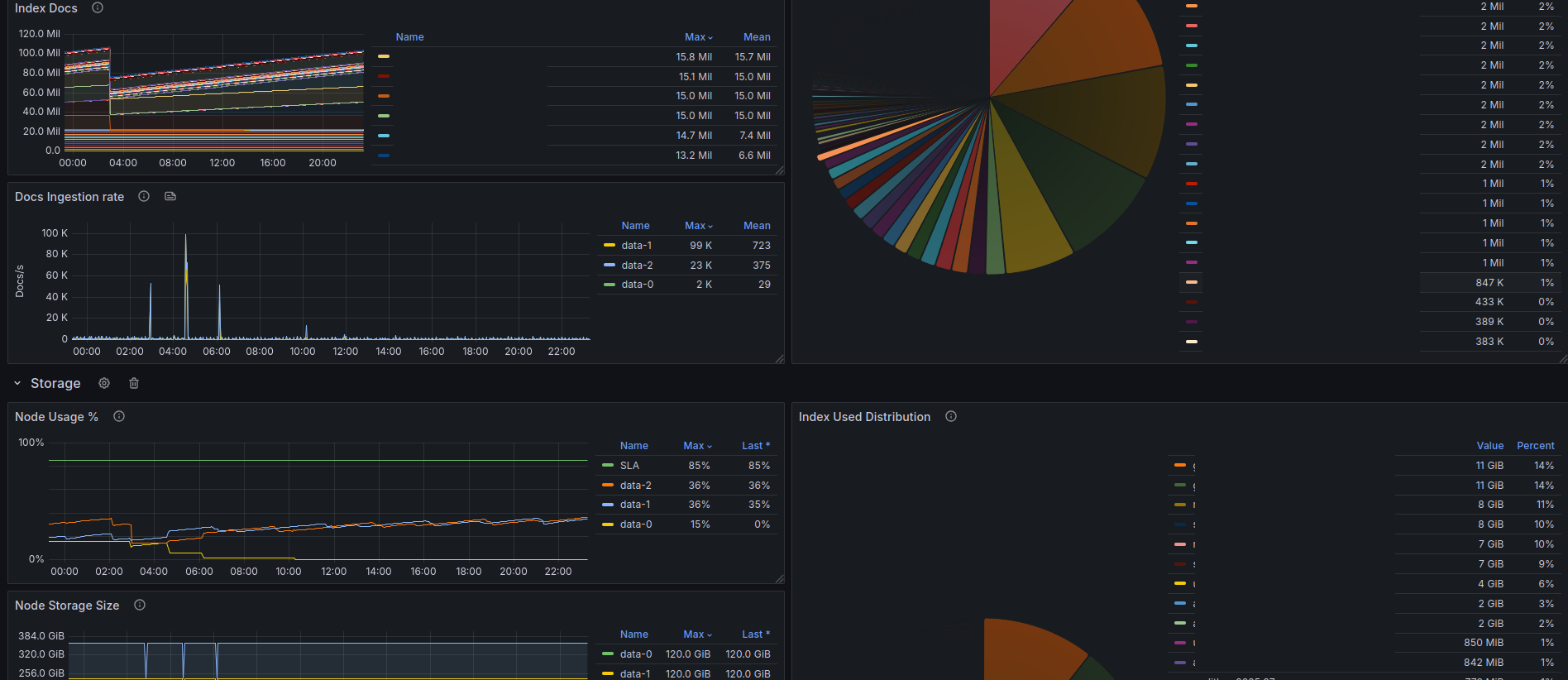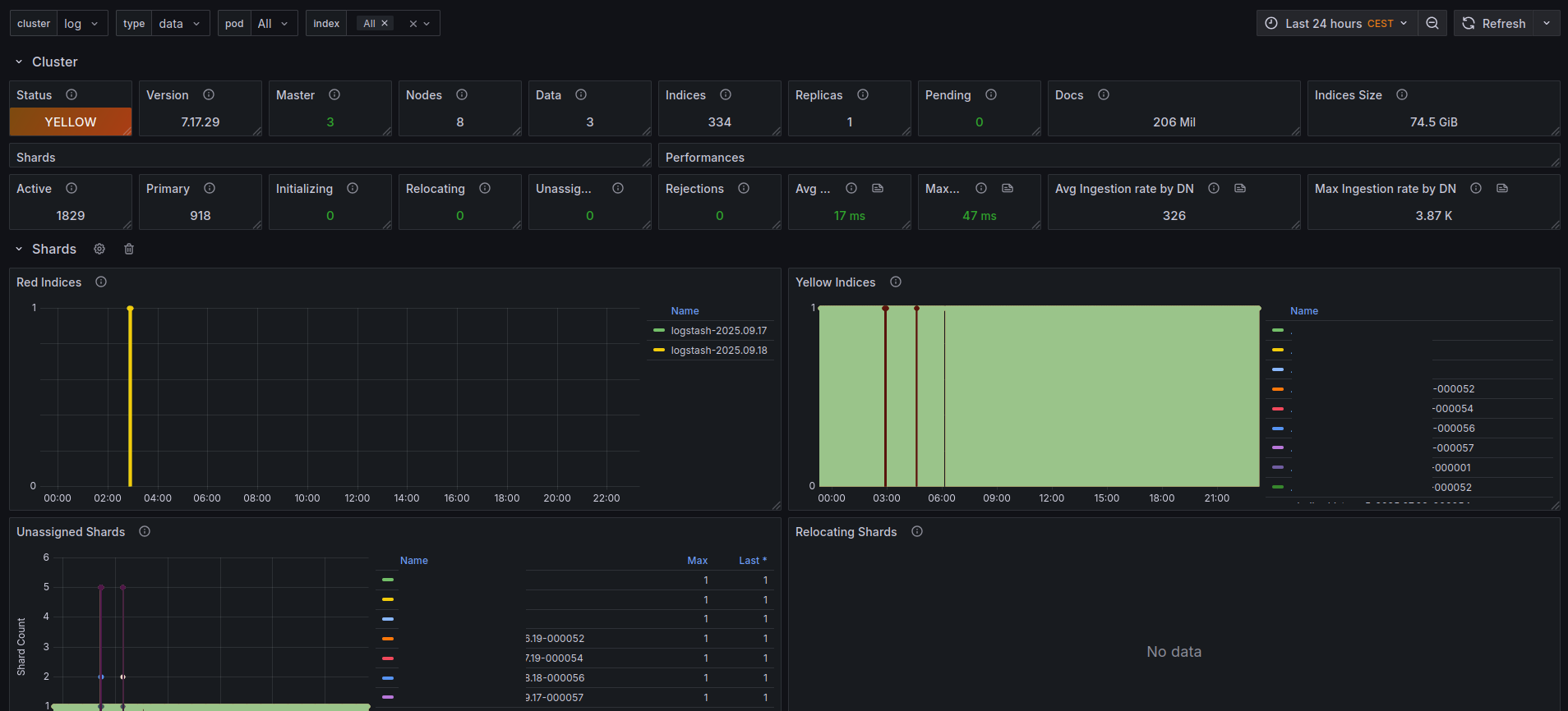 This dashboard needs the elasticsearch exporter and the elasticsearch query exporter to be scraped.