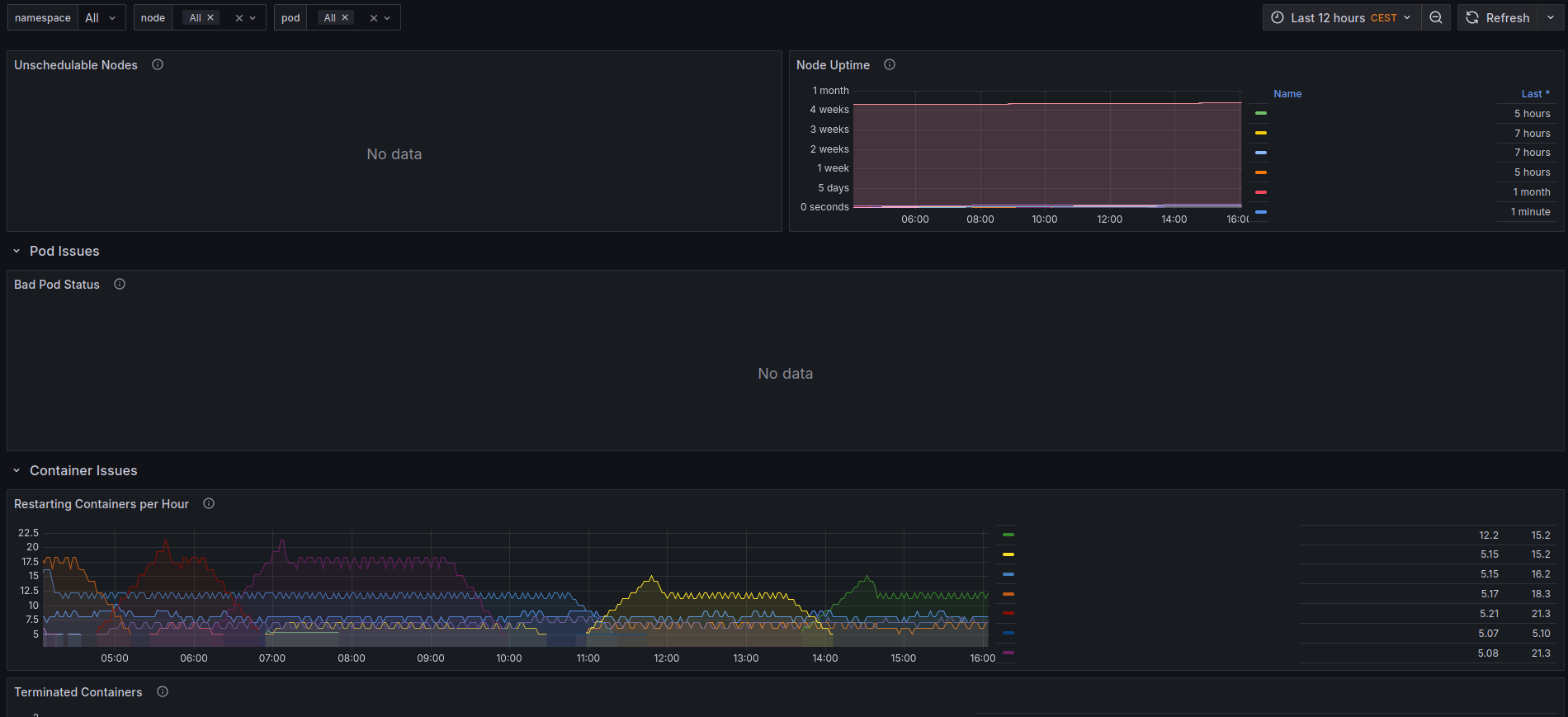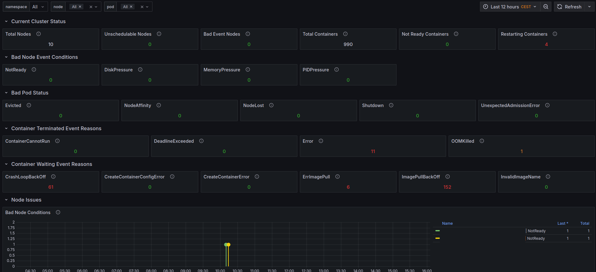 Shows Pods & Nodes that have a bad state
