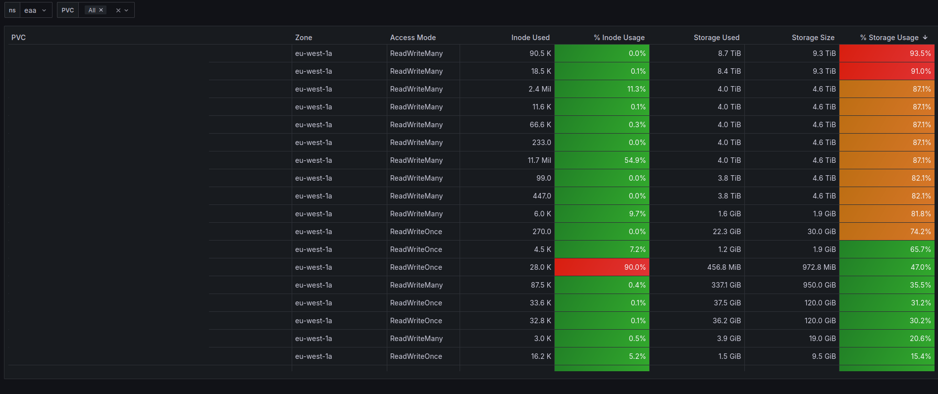 Capacity and Usage of PVC