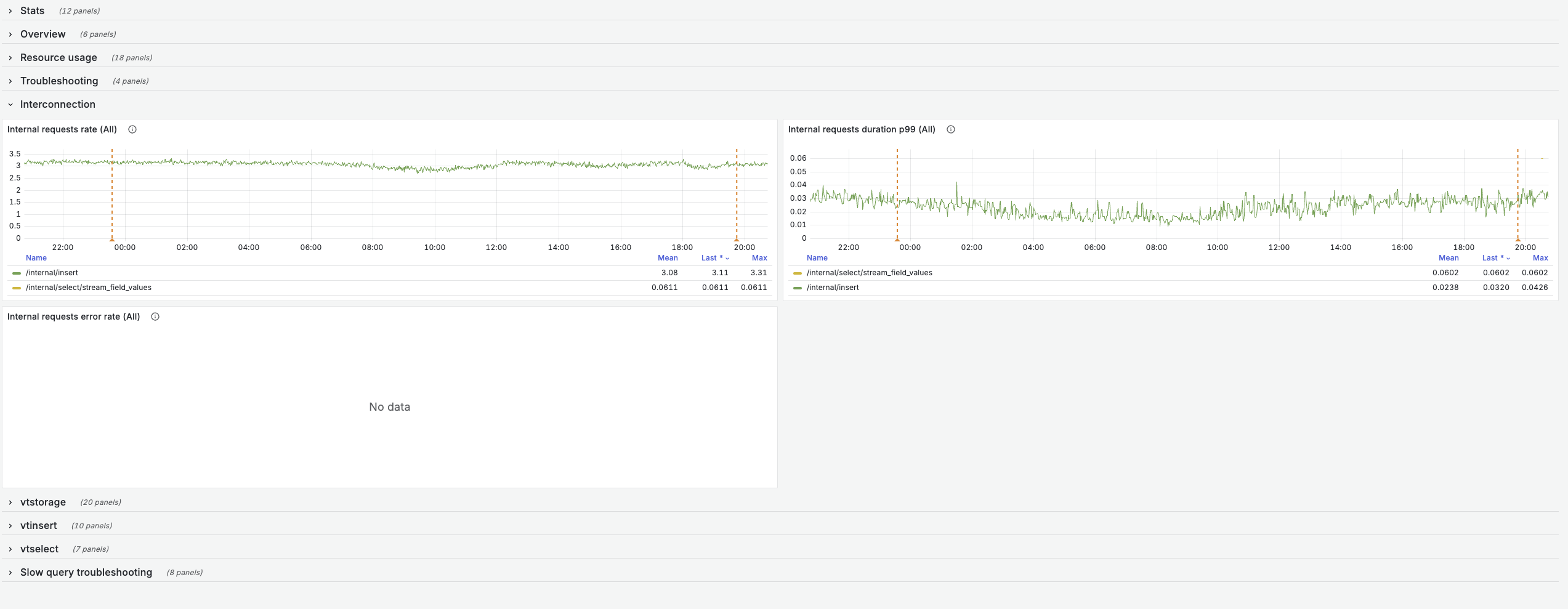• Individual components including vtstorage, vtinsert, and vtselect with component-specific metrics and health indicators.