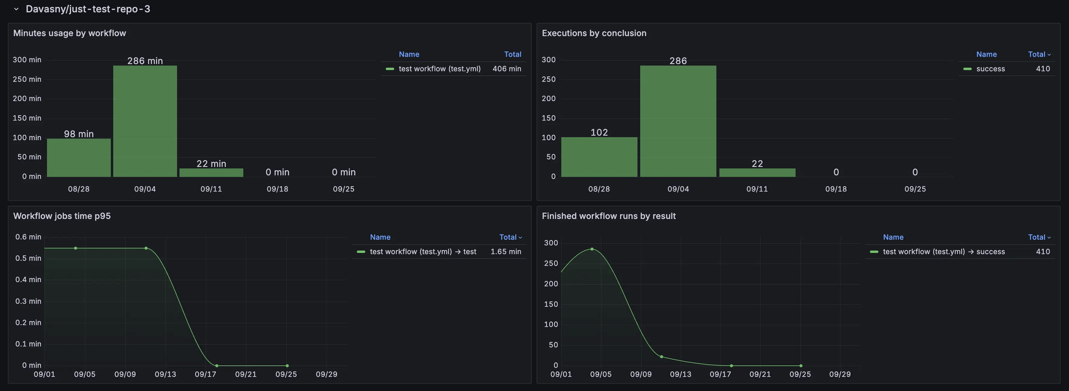 - Filter by repositories, workflows, and time intervals to focus your view.