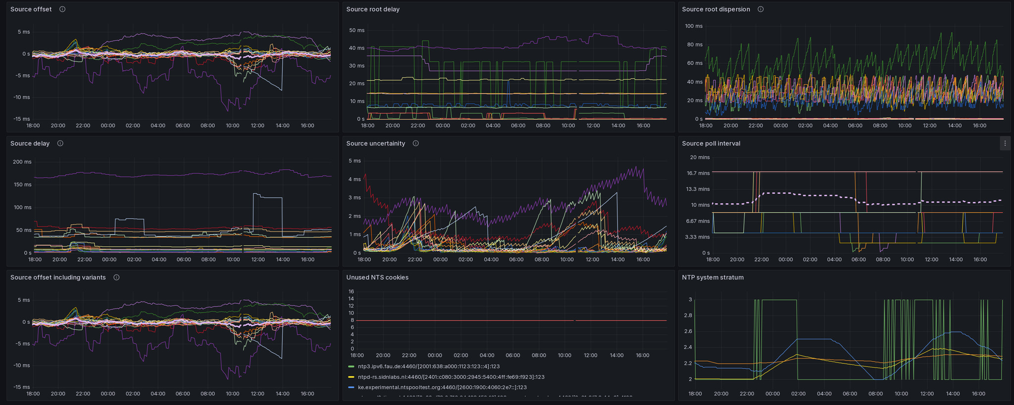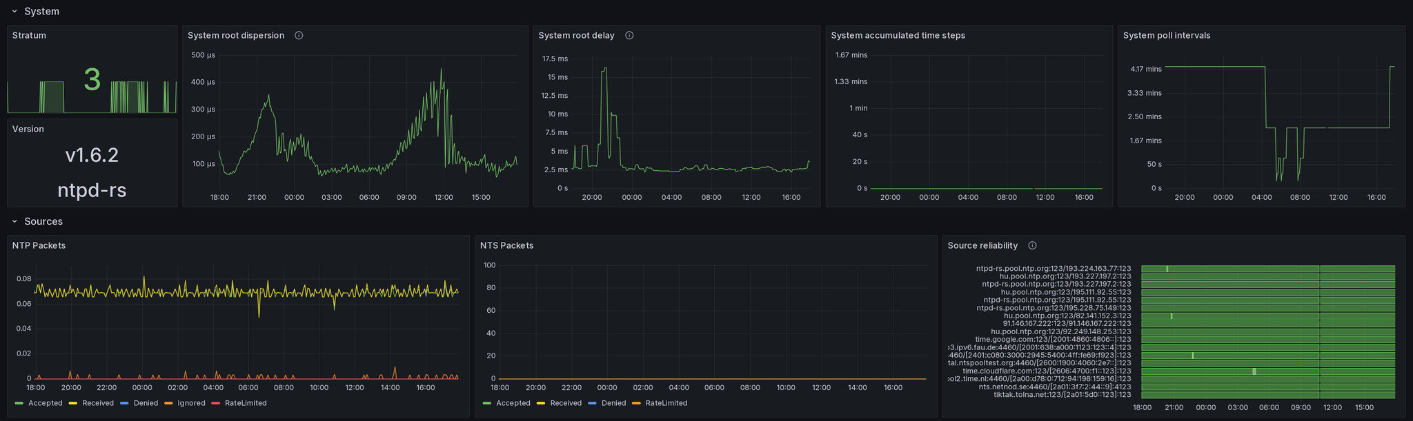 Dashboard for ntpd-rs own metrics exporter, containing (hopefully) all the exported metrics.