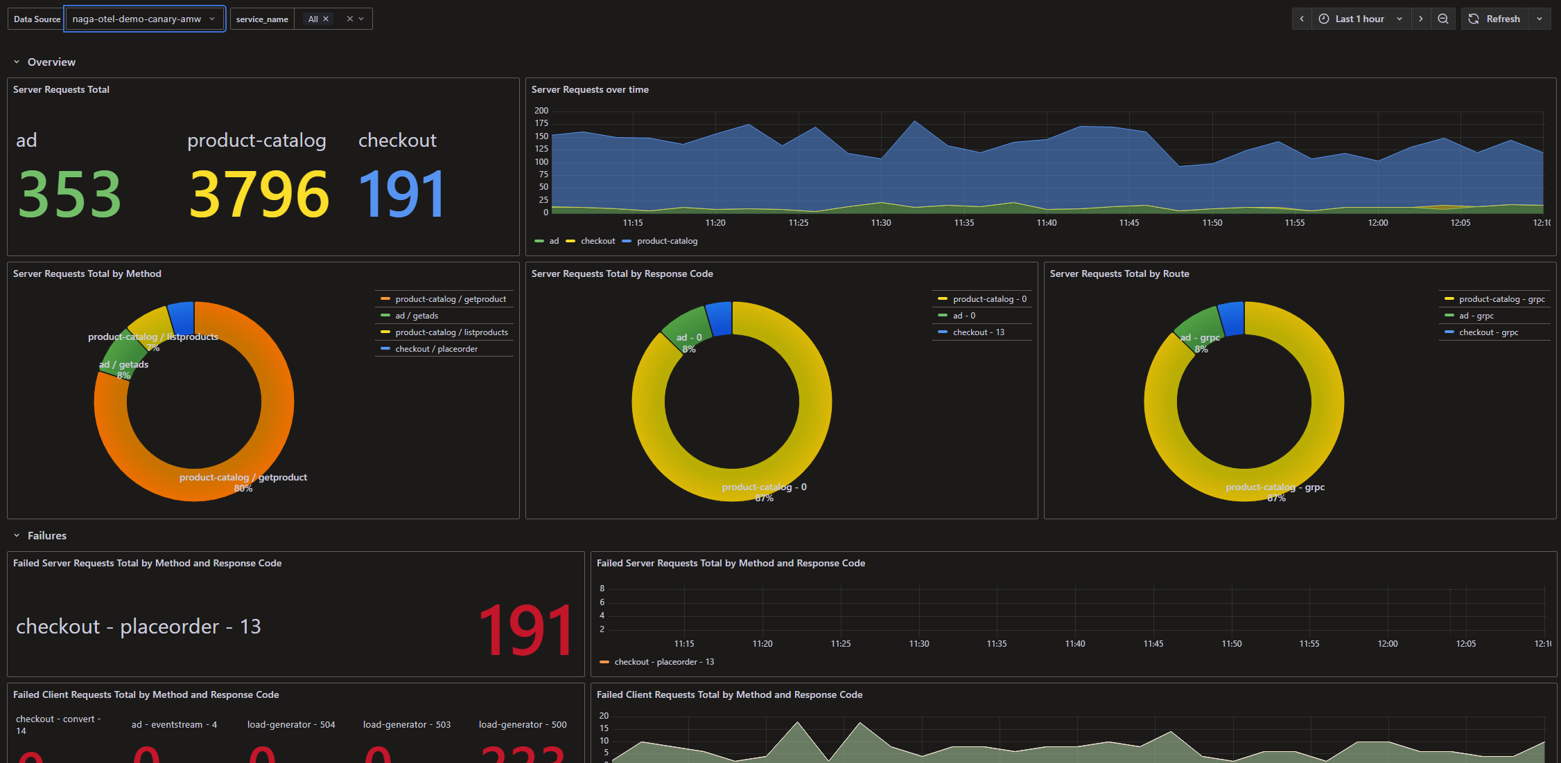 Azure Monitor Application Insights with OpenTelemetry Metrics (RPC) on **Azure Kubernetes Service (AKS)** This dashboard requires OpenTelemetry metrics to be ingested into an Application Insights resource with OTLP enabled.