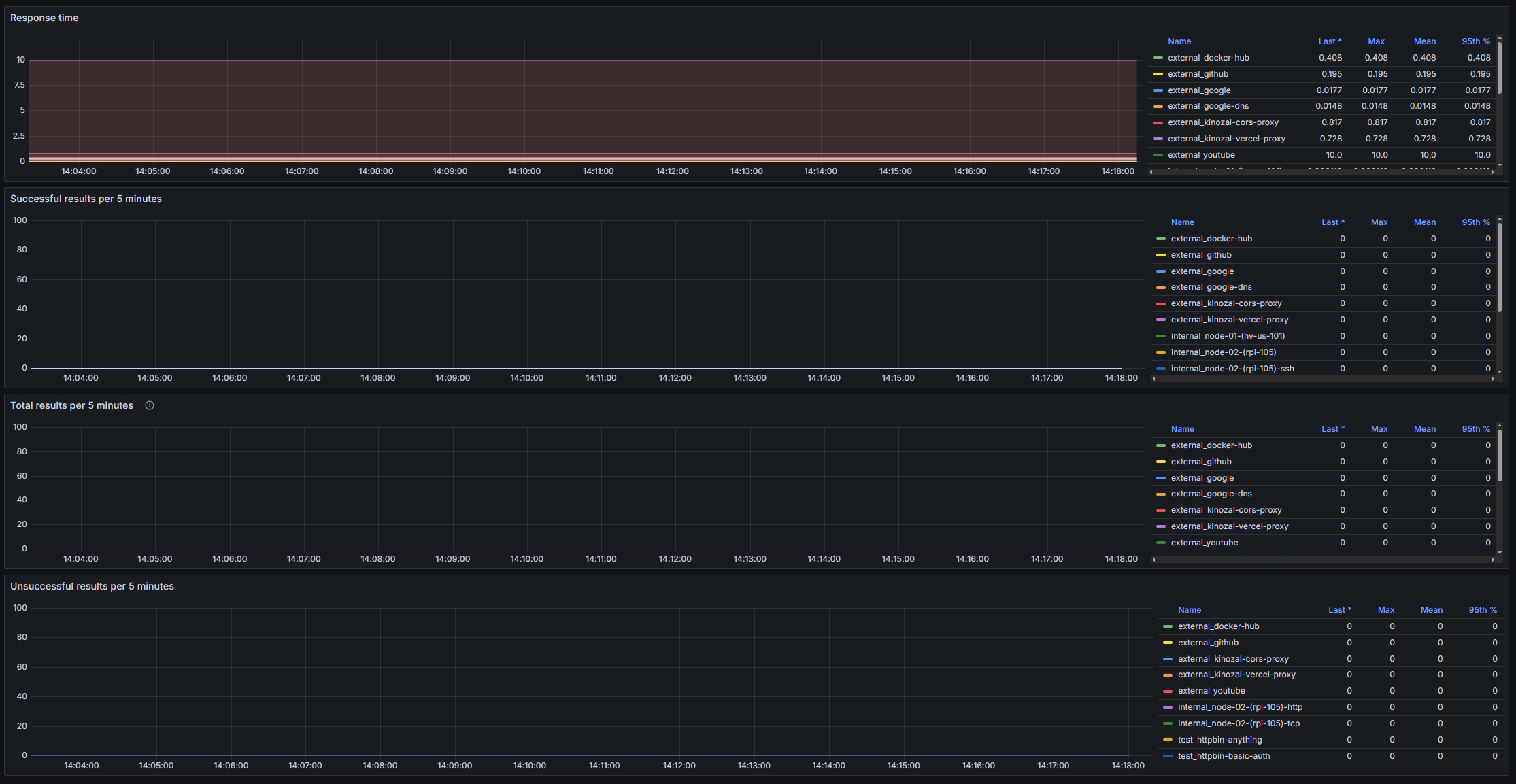 Gatus is a developer-oriented health dashboard that gives you the ability to monitor your services using HTTP, ICMP, TCP, and even DNS queries as well as evaluate the result of said queries by using a list of conditions on values like the status code, the response time, the certificate expiration, the body and many others. The icing on top is that each of these health checks can be paired with alerting via Slack, Teams, PagerDuty, Discord, Twilio and many more.