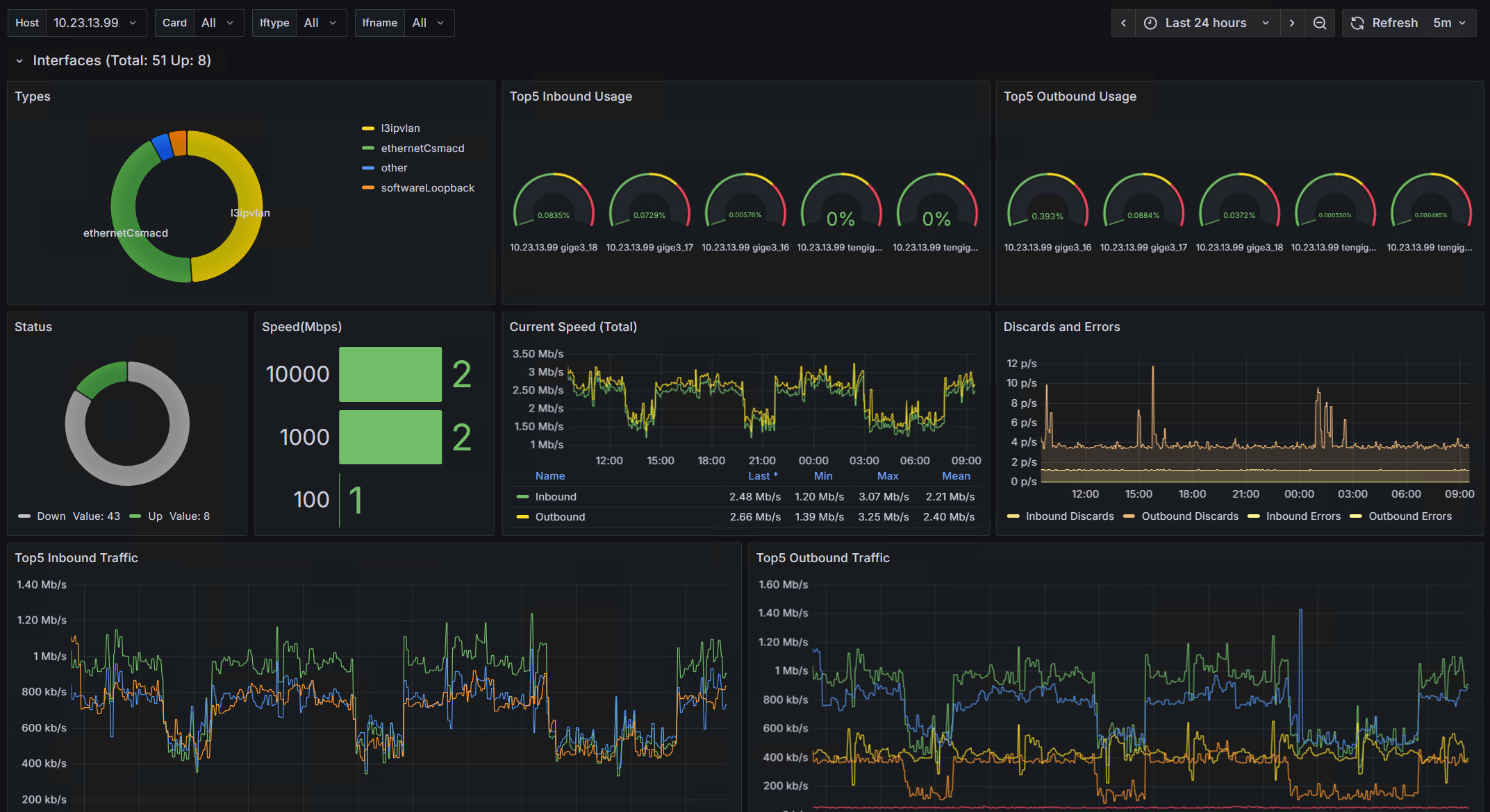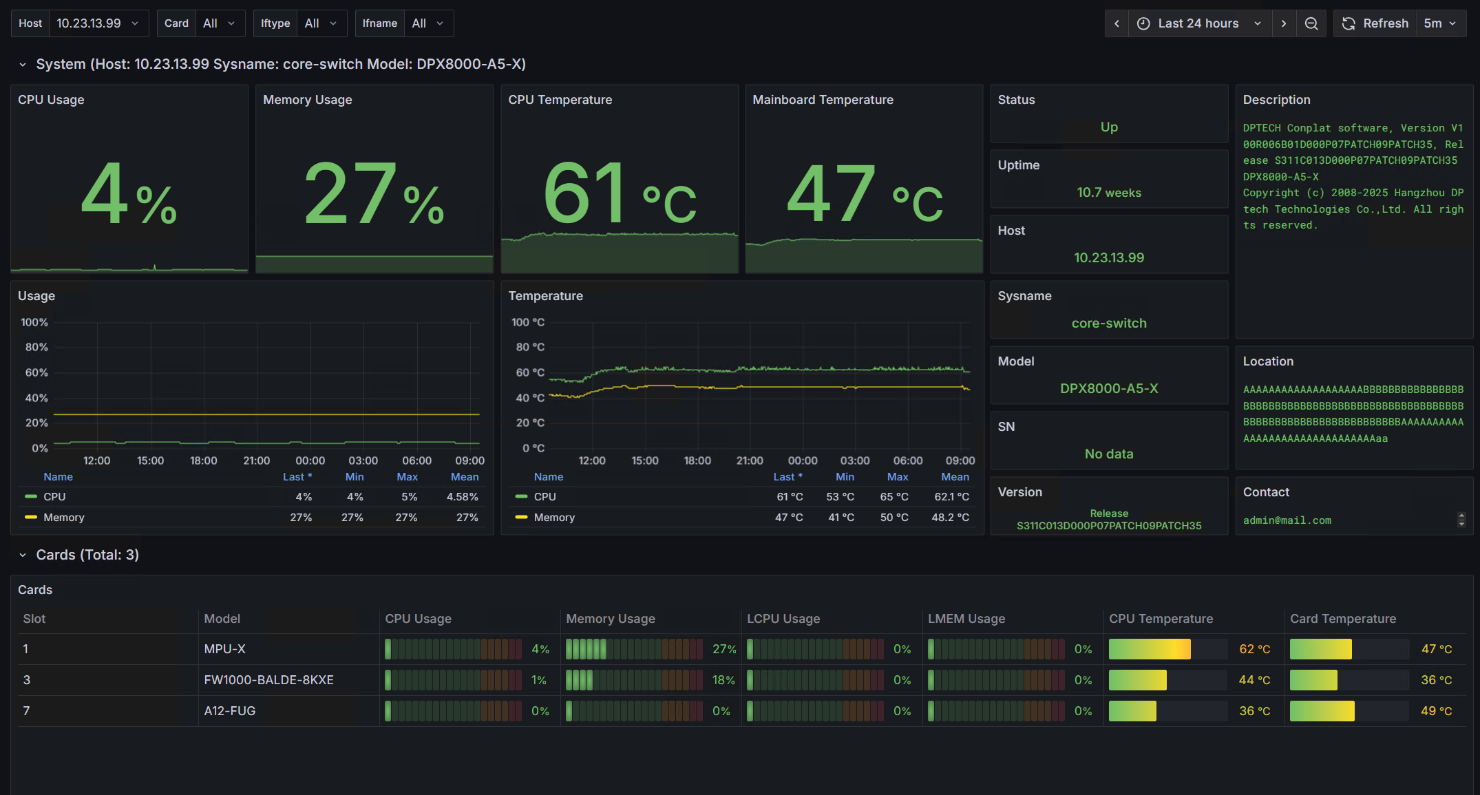 Use Prometheus and the dptech_exporter to collect the statistics of DPtech network devices and display the statistics of DPtech network device.