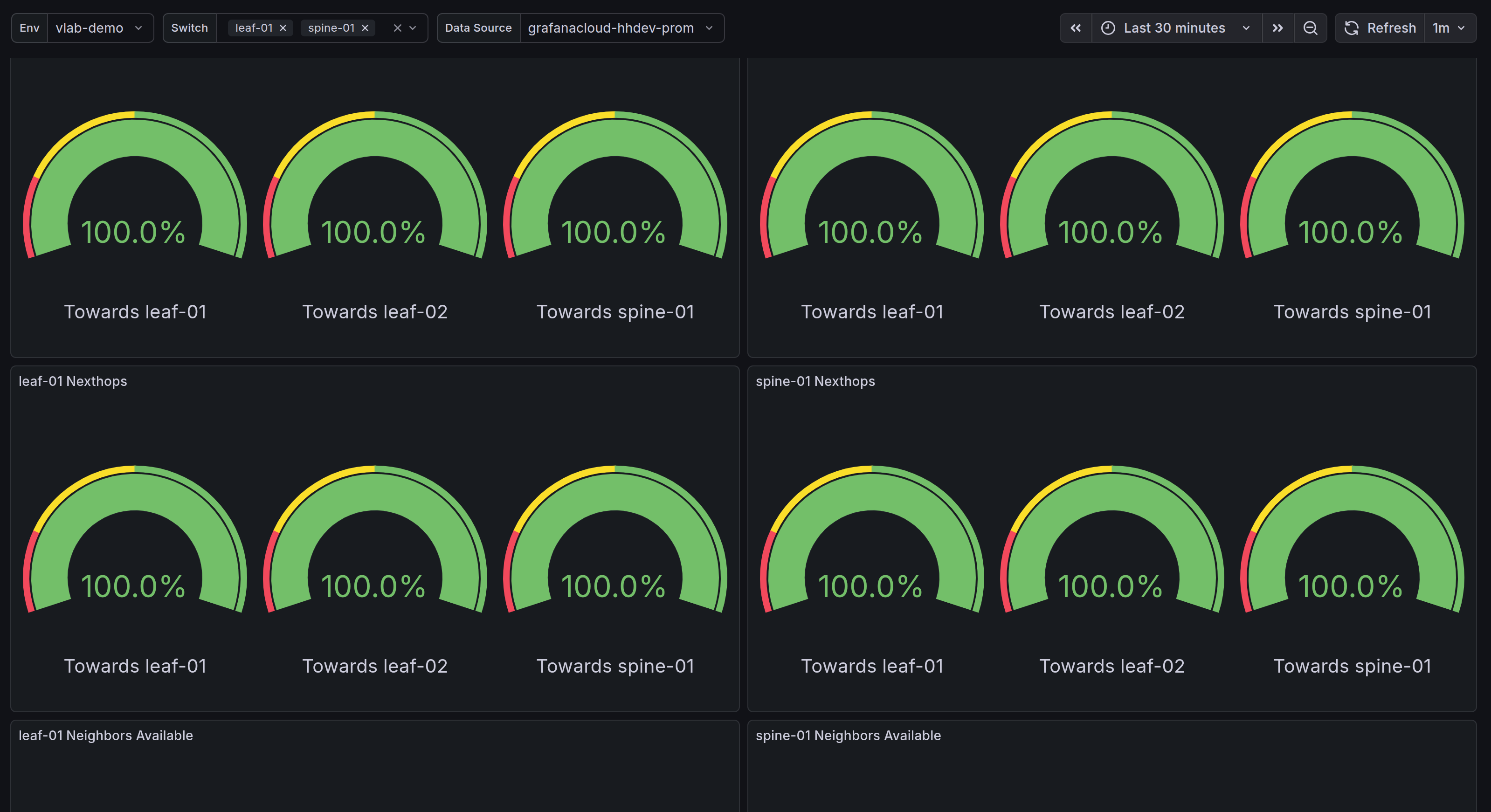 The Hedgehog Switch Critical Resources dashboard uses the prometheus data source to create a Grafana dashboard with the gauge panel.
