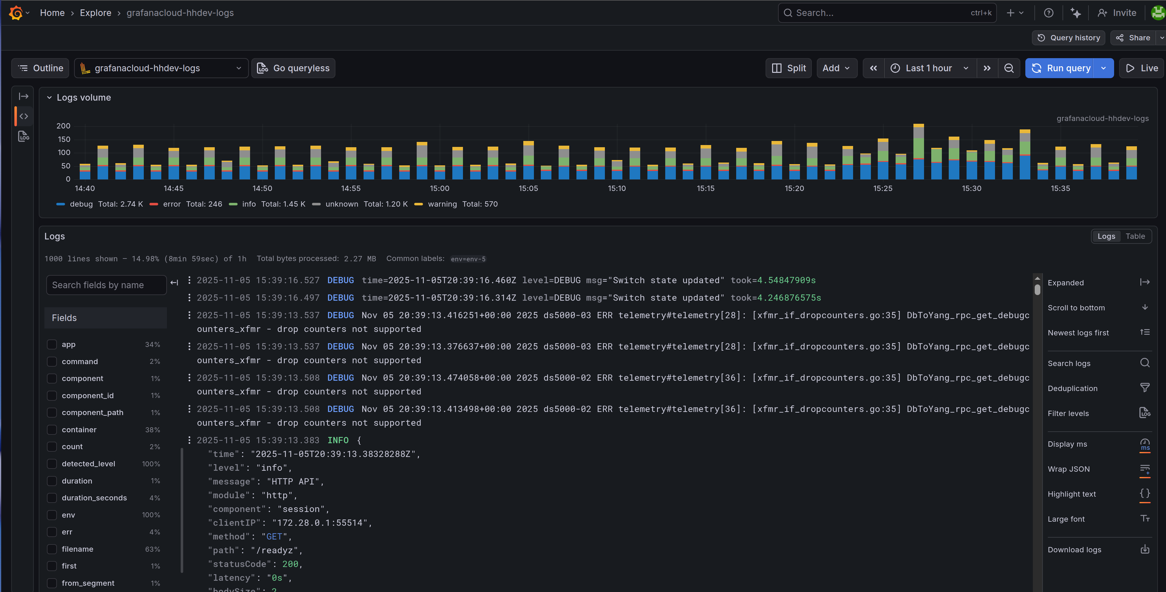 This dashboard shows the logs collected by Loki. https://hedgehog.cloud